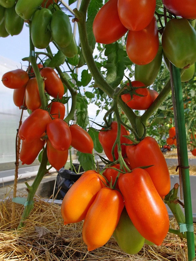 Раннеспелый высокоурожайный индетерминантный гибрид кистевого типа. От всходов до плодоношения плодов проходит 95-100 дней. Растение среднерослое, среднеоблиственнное. Первое соцветие закладывается на... Показать описаниед 8 листом, последующие — через каждые 2 листа. В простых кистях формируется по 6 и более выравненных высокотоварных плодов. Плоды цилиндрической формы с носиком, массой около 100 г, тёмно-оранжевого цвета, с высоким содержанием бета-каротина. Томаты обладают превосходными вкусовыми качествами, имеют приятный ярко выраженный аромат, отлично подойдут для цельноплодного консервирования и потребления в свежем виде. Гибрид стрессо- и болезнеустойчивый. Рекомендуемая плотность посадки — 3-4 растения/м2, формировка в 1-2 стебля. Урожайность — свыше 20,0 кг/м2. Практический совет: - томаты выращивают рассадным способом; к высадке рассада готова в возрасте 55-60 дней; - семена высевают в общую либо индивидуальные ёмкости в небольшой объем грунта на глубину 0,5 см и накрывают прозрачной крышкой, при температуре +25…+28°С всходы появляются на 5-7 день, сразу после появления всходов укрытие нужно снять; - по мере роста рассады необходимо следить за влажностью посевов и производить своевременные пересадки в больший объём грунта. Рекомендуем семена после покупки хранить в холодильнике. Обратите внимание: дизайн упаковки семян может различаться. Это не влияет на качество. Все варианты упаковки, представленные в карточке товара, корректны.