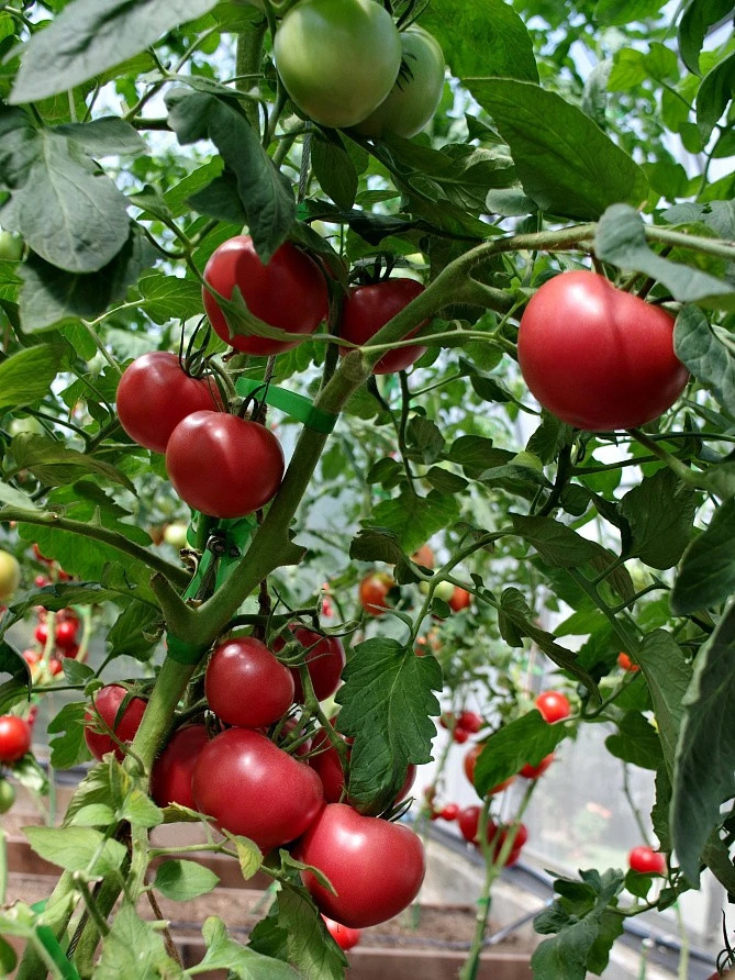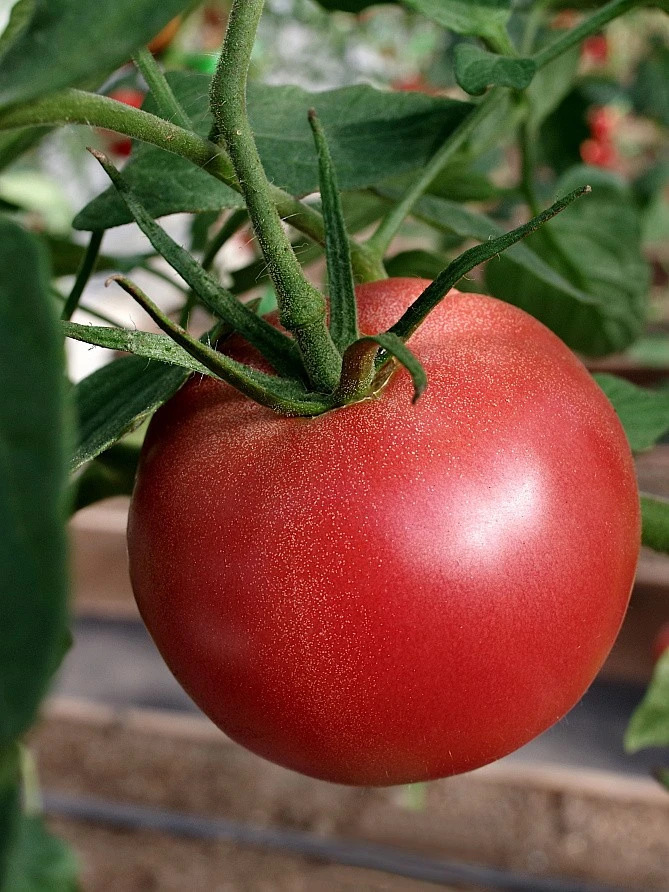 Среднеспелый полудетерминантный гибрид томата высотой до 150 см. Растение компактное, с укороченными междоузлиями, слабооблиственное. Первое соцветие закладывается над 8-9 листом, последующие – через ... Показать описание2 листа. В простых компактных кистях формируется по 6-7 малиновых плодов округлой формы, массой 110-150 г. Томаты сочные, ароматные, сладкого вкуса, превосходны для свежего потребления, а также консервирования, отлично транспортируются и хранятся. Гибрид устойчив к вирусу томатной мозаики (ToMV), фузариозному (Fol) и вертициллезному (Va, Vd) увяданию. Плотность посадки - 3-4 растения/м2. Рекомендуем формировать растения в 2-3 стебля. Урожайность – более 16 кг/м2. Практический совет: - томаты выращивают рассадным способом; к высадке рассада готова в возрасте 55-60 дней; - семена высевают в общую либо индивидуальные ёмкости в небольшой объем грунта на глубину 0,5 см и накрывают прозрачной крышкой, при температуре +25…+28С° всходы появляются на 5-7 день, сразу после появления всходов укрытие нужно снять; - по мере роста рассады необходимо следить за влажностью посевов и производить своевременные пересадки в больший объём грунта. Рекомендуем семена после покупки хранить в холодильнике.