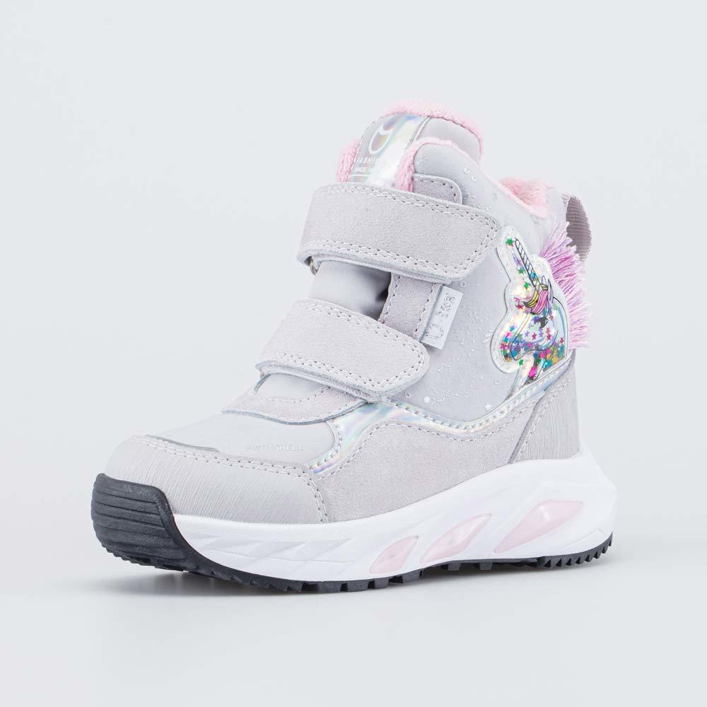 Светящиеся мембранные ботинки, декорированные накладкой в виде единорога с глиттером, выполнены с применением технологии софтшелл. Это уникальный материал с ветрозащитными и влагозащитными свойствами.... Показать описание Он отталкивает грязь, при этом сохраняет тепло. Средний слой – мембрана k-tex. Благодаря микроскопическим порам она дышит, но не пропускает внутрь влагу. Внутри подкладка – шерстяной мех из натуральной овечьей шерсти, плюс войлочная стелька. Они обеспечивают тепло и комфорт внутри обуви. Липучки-велькро позволяют быстро обуваться и разуваться. Невесомая и амортизирующая подошва из ЭВА дополнена накладкой из термопластичной резины для прочности и лучшей устойчивости на зимних дорожках. Модель разработана для детей дошкольного возраста, поэтому большое внимание уделено анатомическим свойствам и правильной поддержке стопы. Внимание: мембранная обувь не предназначена для длительного нахождения в воде. Мерить лужи лучше в резиновых сапожках.