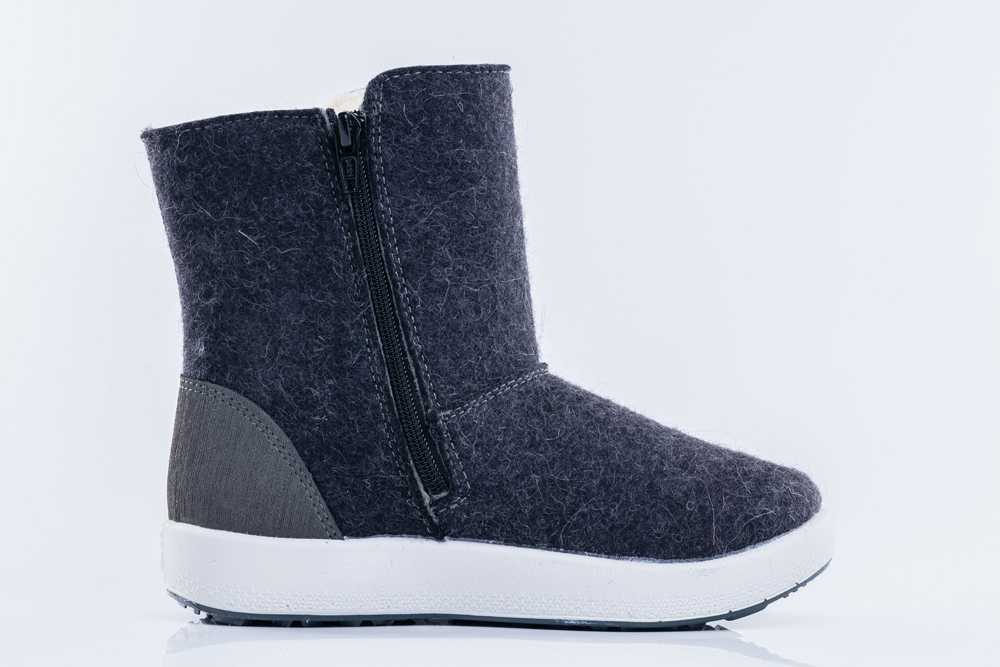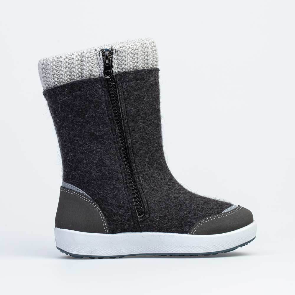 Детские утепленные сапожки из легкого, гибкого и амортизирующего материала ЭВА выполнены в трендовом сером цвете. Имеют вкладной чулок и манжету для защиты от влаги. Вкладной чулок с пришитой войлочно... Показать описанией стелькой состоит из нескольких слоев: 1 - внутренний из хлопкового флиса впитывает избыток влаги; 2 - утеплитель из полиэстера отвечает за теплоизоляцию. Укреплен внешним карманом из искусственной кожи, чтобы обеспечить дополнительно поддержку для стопы и защитить задник от преждевременного истирания. Чулок можно вынуть и просушить на батарее, а также при необходимости постирать в режиме ручной стирки. Верхний манжет из серебристого нейлона затягивается на шнурок с фиксатором и защищает от попадания воды внутрь обуви. Обувь анатомически-правильная: разработана с учетом особенностей подростковой стопы. Сделано в России.