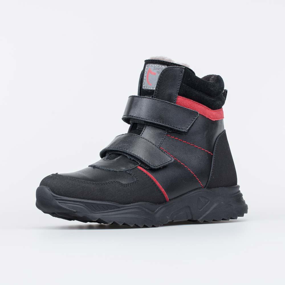 Кожаные зимние ботинки для мальчика на натуральном меху черного цвета Верх выполнен из натуральной кожи - износостойкого, гипоаллергенного и дышащего материала. В носочной части и области задника есть... Показать описание дополнительная кожаная накладка с полиуретановым покрытием для увеличения износостойкости. Подкладка из натурального меха хорошо согревает и обладает массажным эффектом. Липучки-велькро позволяют отрегулировать обувь по подъему, а также быстро обуваться и разуваться. Мягкий манжет обеспечивает комфорт при ходьбе. Подошва из ПУ (полиуретана) - легкая, гибкая, амортизирующая. Модель анатомически правильная: имеет небольшой каблучок/танкетку, в меру жёсткий задник и круглый носок. Стелька из натуральной шерсти приформовывается к своду стопы, таким образом создавая индивидуальную анатомическую форму внутреннего пространства в обуви, подходящую только вашему ребенку. Это положительно влияет на правильное развитие стоп и всего опорно-двигательного аппарата. Сделано в России.