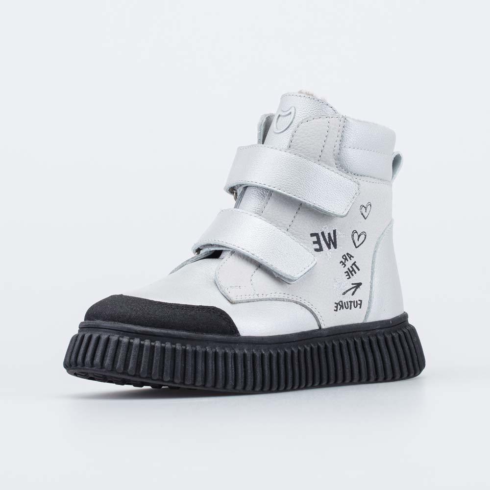Зимние кожаные ботинки украшены принтом и походят для девочки. Верх выполнен из натуральной гладкой кожи серебристого цвета. Носочная часть защищена кожаной накладкой с полиуретановым покрытием, предо... Показать описаниехраняющей обувь от реагентов и повреждений. Подкладка из шерстяного меха и вкладная войлочная стелька отлично согревают и отводят от стоп влагу. Липучки-велькро позволяют ребенку быстро обуваться и разуваться. Модная кедовая подошва из ТЭП (термоэластопласта) обеспечивает дополнительную теплоизоляцию и обладает повышенной устойчивостью на зимних дорожках. Модель разработана для детей дошкольного возраста, поэтому большое внимание уделено правильной анатомии обуви и поддержке стопы. Сделано в России, Егорьевск.
