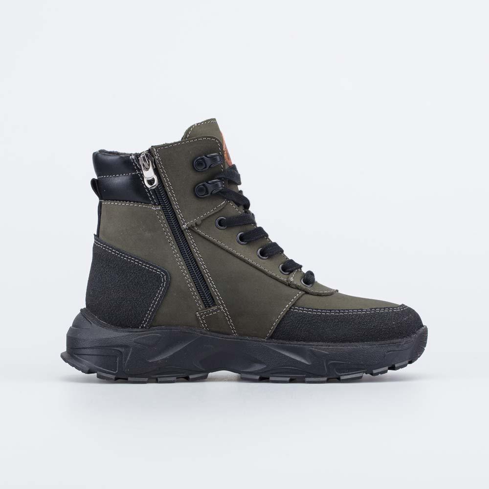 Зимние ботинки оливкового цвета подходят для мальчика-подростка. Верх изготовлен из натурального нубука. Носочная и пяточная части защищены дополнительными кожаными накладками с полиуретановым покрыти... Показать описаниеем, предохраняющими от повреждений, влаги и реагентов. Подкладка из шерстяного меха отлично сохраняет тепло и дарит ощущение уюта. Вкладная войлочная стелька снабжена шелковой петелькой, чтобы было удобно вынимать для проветривания. Шнурки позволяют отрегулировать обувь по ноге, молния дает возможность быстро обуваться и разуваться. Подошва из ТЭП (термоэластопласта) обеспечивает дополнительную теплоизоляцию и обладает хорошей устойчивостью на зимних дорожках. Модель разработана с учетом особенностей подростковой стопы и имеет необходимые элементы поддержки. Сделано в России, Егорьевск.