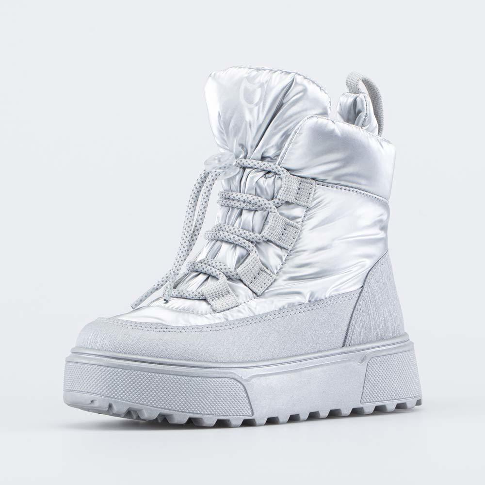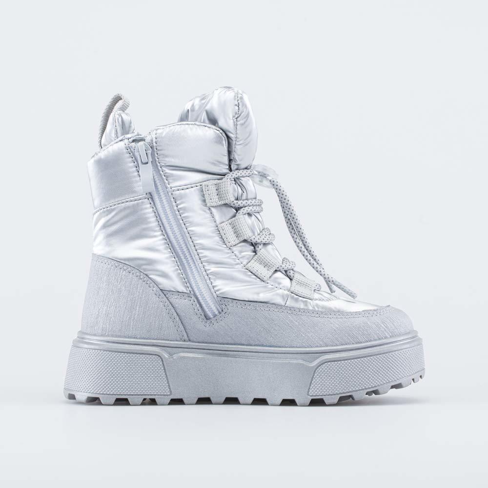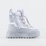 Зимние дутики серебристого цвета, выполненные в стиле ботинок, подходят для девочки-подростка. Верх изготовлен из высокотехнологичного текстиля и защищает ножки от ветра, грязи и брызг. А благодаря мн... Показать описаниеогослойной структуре, образующей воздушную прослойку, отлично сохраняет тепло. Дополнительно согревает подкладка – шерстяной мех из натуральной овечьей шерсти. Шнурок-резинка с фиксатором обеспечивает плотное прилегание обуви по ноге, а молния позволяет быстро обуваться и разуваться. По всему периметру дутики защищены искусственной кожей, предохраняющей от влаги и реагентов. Подошва с высоким протектором изготовлена из ТЭП (термоэластопласта), что обеспечивает дополнительную теплоизоляцию, а также устойчивость на зимних дорожках. Модель анатомически-правильная: выполнена с учетом особенностей подростковой стопы.