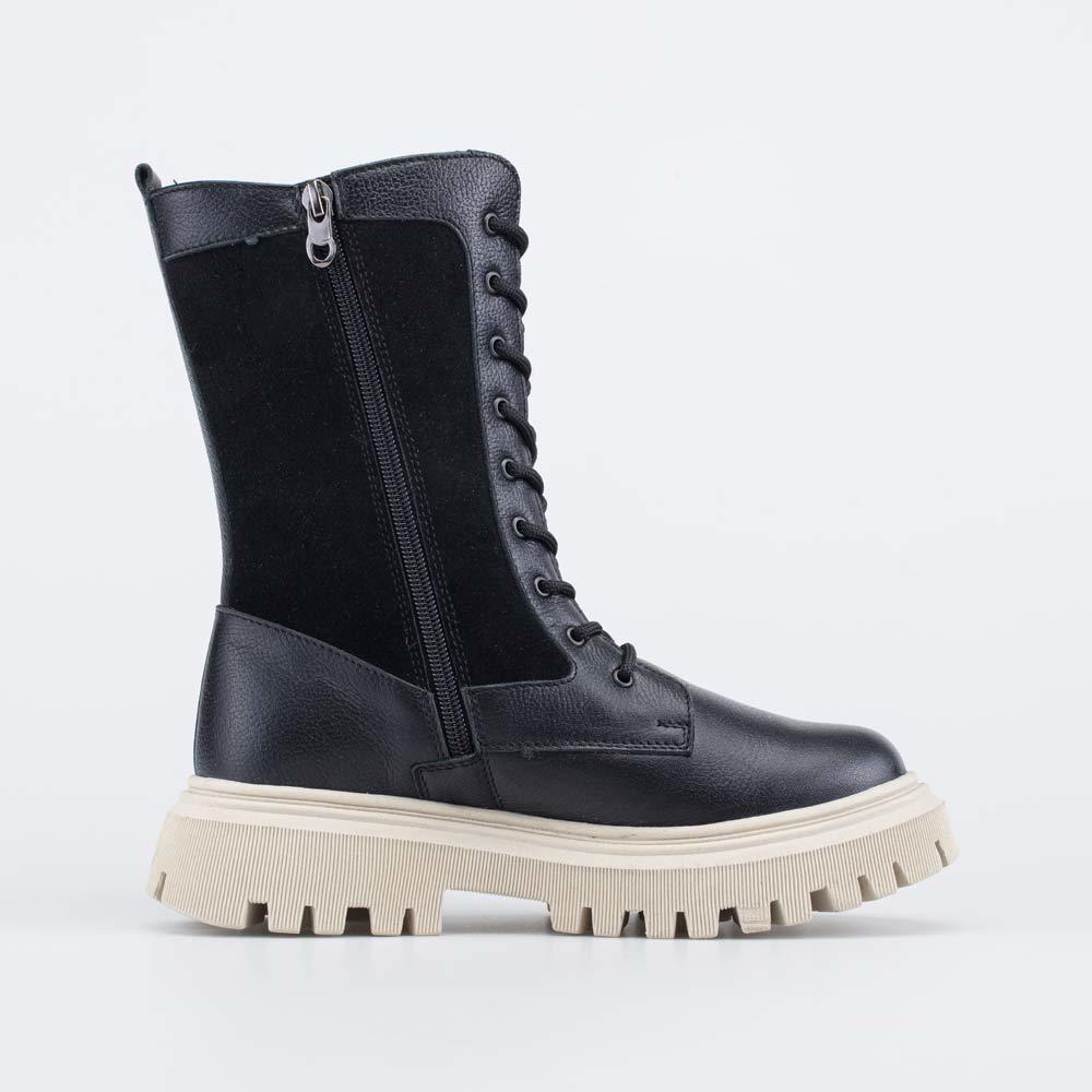Зимние сапоги на овчине походят для девочки-подростка. Верх выполнен из сочетания натуральной гладкой кожи и натурального велюра черного цвета. Внутри - подкладка из 100% овечьего меха, которая отличн... Показать описаниео согревает. Войлочная стелька дополнена петелькой, чтобы было удобно доставать для просушки. Шнурки, расположенные по всей высоте сапожка, позволяют отрегулировать обувь по ноге, а молния – быстро обуваться и разуваться. Подошва из с высоким протектором изготовлена из ТЭП (термоэластопласта), поэтому обеспечивает дополнительную теплоизоляцию и обладает хорошей устойчивостью на зимних дорожках. Лаконичный дизайн позволяет сочетать сапожки с разными образами. Модель анатомически-правильная: выполнена с учетом особенностей подростковой стопы. Сделано в России, Егорьевск.