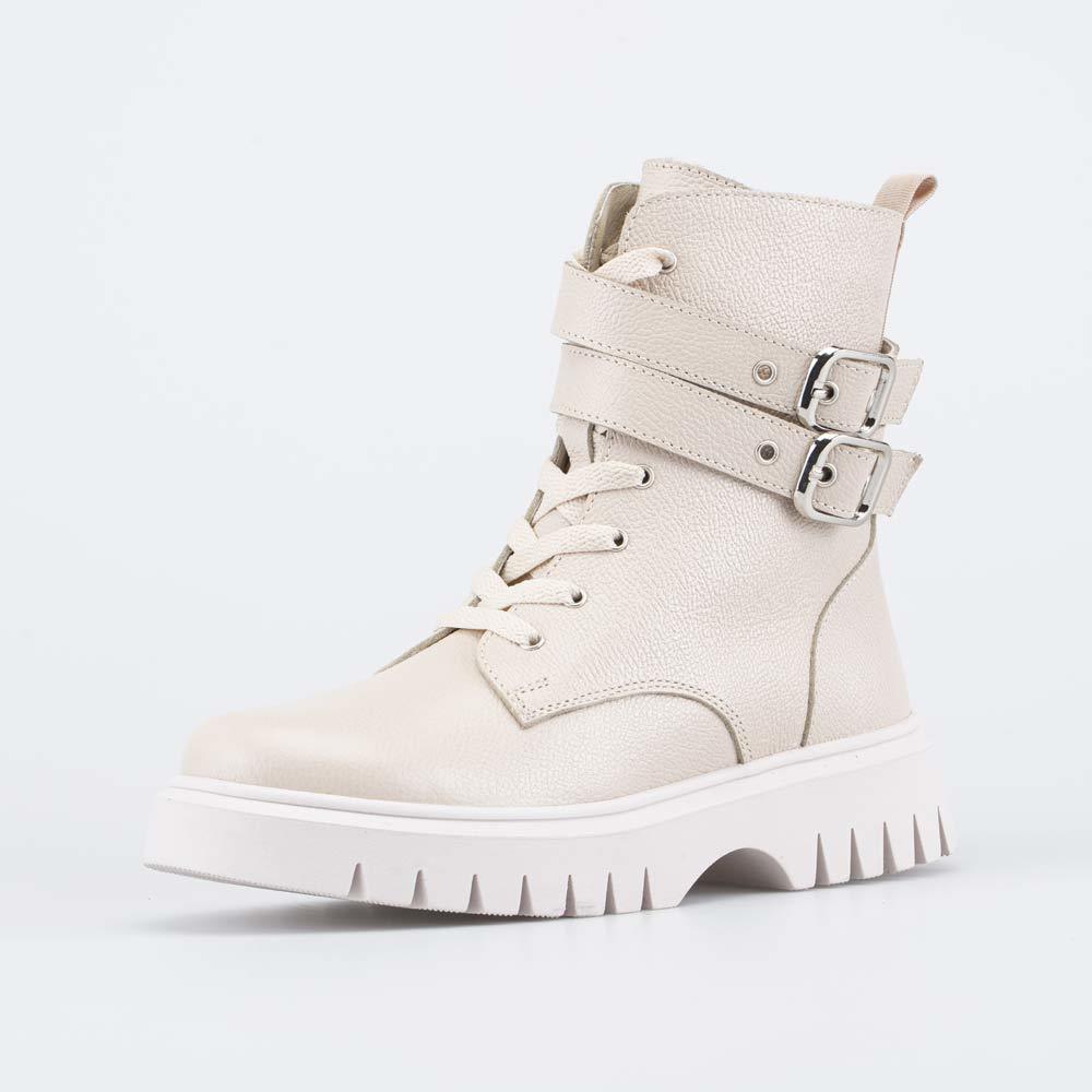 Высокие зимние ботинки на овчине походят для девочки-подростка. Верх выполнен из натуральной гладкой кожи бежевого цвета . Внутри - подкладка из 100% овечьего меха, которая отлично согревает. Войлочна... Показать описаниея стелька дополнена петелькой, чтобы было удобно доставать для просушки. Шнурки позволяют отрегулировать обувь по ноге, а молния – быстро обуваться и разуваться. Подошва из с высоким протектором изготовлена из ТЭП (термоэластопласта), поэтому обеспечивает дополнительную теплоизоляцию и обладает хорошей устойчивостью на зимних дорожках. Ботинки декорированы ремешками с пряжками, а лаконичный дизайн позволяет сочетать их с разными образами. Модель анатомически-правильная: выполнена с учетом особенностей подростковой стопы. Сделано в России, Егорьевск.