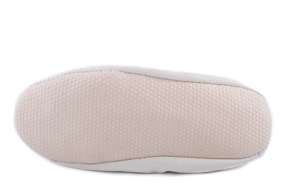 Кожаные чешки серебристого цвета для девочки. Модель выполнена из натуральной кожи - износостойкого, гипоаллергенного и дышащего материала. На ножке фиксируются при помощи резинки. Подошва текстильная... Показать описание с антискользящим покрытием.
