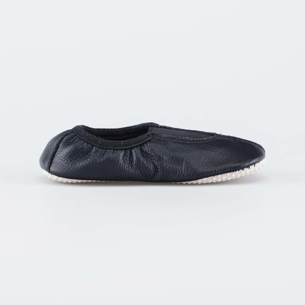 Чешки детские для занятий танцами и гимнастикой выполнены из натуральной кожи. Кожаные чешки хорошо держатся на ножках: широкая резинка в союзочной части и окантовка эластичной тесьмой прочно фиксирую... Показать описаниет модель и препятствуют ее соскальзыванию при движении. Внутренние швы выполнены с соблюдением специальной технологии, которая снижает вероятность натирания при интенсивных движениях. Противоскользящая подошва изготовлена из плотного трикотажа со специальным ПВХ покрытием. Черные чешки подходят для занятий в зале, а также для утренников в детском саду. Сделано в России.