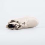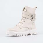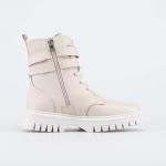 Демисезонные ботинки для девочки на байковой подкладке бежевого цвета Верх выполнен из натуральной кожи - износостойкого, гипоаллергенного и дышащего материала. Подкладка и стелька из байки, которые н... Показать описаниеа 80% состоят из натуральной шерсти, хорошо сохраняют тепло. Мягкий манжет снижает вероятность натирания. Шнурки позволяют отрегулировать обувь по подъему, а молния - быстро обуваться и разуваться. Подошва из ЭВА (этиленвинилацетата) - гибкая, амортизирующая и очень легкая. Модель анатомически правильная: есть небольшая приподнятость пятки по отношению к носку, в меру жёсткий задник и круглый носок. А стелька из натуральной шерсти приформовывается к своду стопы, создавая индивидуальную анатомическую форму внутреннего пространства в обуви, подходящую только вашему ребенку. Это положительно влияет на правильное развитие стоп и всего опорно-двигательного аппарата. Сделано в России.