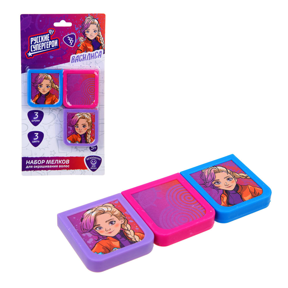 Создайте яркий и стильный образ с набором мелков для окрашивания волос BY Русские Супергерои! В комплект входят три насыщенных цвета: голубой, розовый и фиолетовый. Подходят для детей от 5 лет, обеспе... Показать описаниечивая безопасное использование благодаря гипоаллергенной формуле. Мелки легко наносятся и смываются обычным шампунем, позволяя менять образы хоть каждый день. Компактный размер и отдельная упаковка для каждого мелка делает их удобными для хранения и использования дома или на праздниках. Идеальный выбор для творчества, игр и экспериментов с внешностью — сделайте каждый день ребенка по-настоящему красочным!