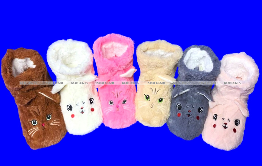 Носки-САПОЖКИ женские с мехом Мордочки ВЫСОКИЕ оптом. Домашние носки тапочки - в упаковке 2 пары одного универсального размера разного цвета и рисунка. Сапожки внутри с мехом - подошва мягкая с "... Показать описаниетормозами". ПОДАРОЧНЫЙ НАБОР - Рисунки и расцветки могут быть разными (без выбора цветов). Цена указана за 1 пару. * Цвет ассорти * Состав акрил 100 %