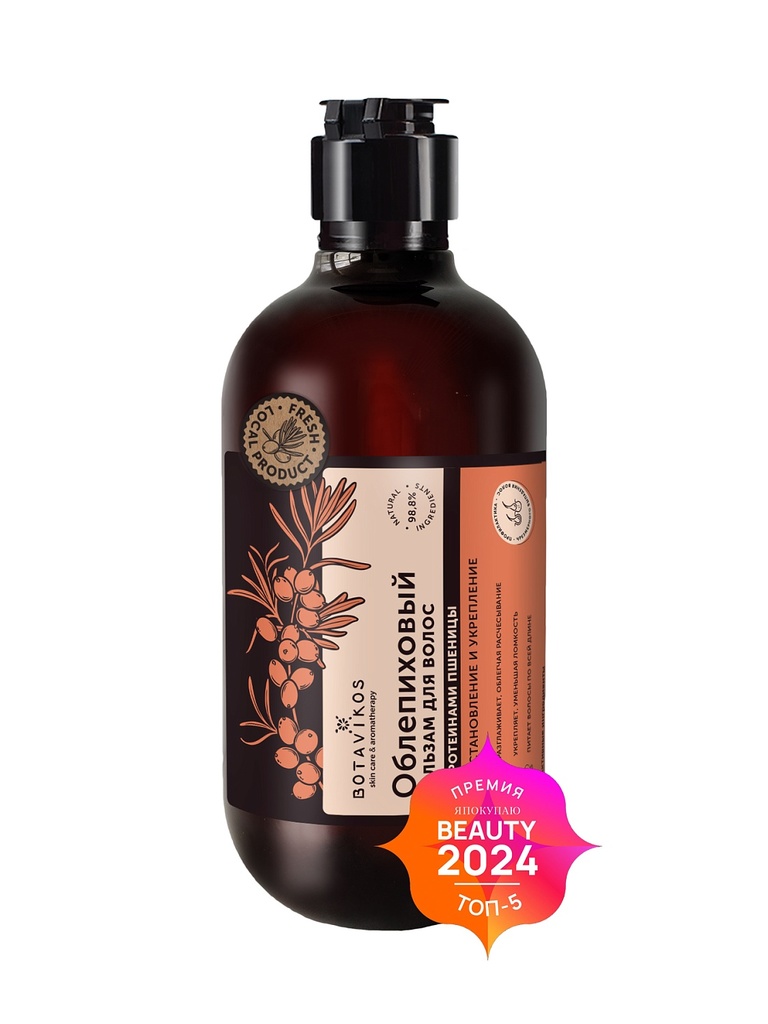 Ароматный бальзам для волос на основе растительных ингредиентов создан для восстанавливающего ухода за волосами. Ценный экстракт облепихи благодаря своему витаминно-минеральному комплексу увлажняет и ... Показать описаниепитает, делает волосы гладкими и мягкими, возвращает объем и жизненную силу. Разглаживает, облегчая расчесывание Укрепляет, уменьшая ломкость Питает волосы по всей длине Результат: гладкие сильные объемные волосы без ломкости Активные компоненты: Экстракт облепихи богат витаминами и минералами, необходимыми для роста и здоровья волос. Восстанавливает здоровый внешний вид, делая волосы живыми и блестящими. Инулин (пребиотик) защищает волосы от потери влаги, оказывает кондиционирующий эффект, уменьшает ломкость волос по всей длине. Ниацинамид (витамин В3) повышает эластичность волос, усиливает естественный блеск, обеспечивает профилактику преждевременного появления седины. Бетаин (аминокислота) обладает увлажняющим эффектом, избавляет от сухости и тусклого цвета волос, укрепляет волосы, придает гладкость. Экстракт имбиря улучшает структуру волос, делает волосы гуще и объемнее, возвращает естественное сияние. Масло ромашки обеспечивает волосам и коже головы необходимое питание, борется с чрезмерной сухостью и ломкостью волос. Протеины пшеницы укрепляют и насыщают волосы влагой, возвращая им силу, упругость, делают волосы гуще и объемнее.
