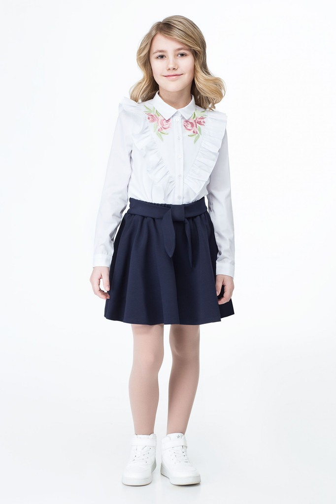 Лаконичная белая блузка приталенного силуэта с коротким рукавом - must have школьного гардероба девочки! Базовая блузка может быть неотъемлемым элементом делового образа, а также частью более свободно... Показать описаниего и неформального ансамбля в стиле casual, дополнив толстовку. 71% хлопок, 25% нейлон, 4% эластан