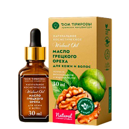 Ценное масло с высокой концентрацией антиоксидантов. Интенсивно питает кожу, повышает ее эластичность и замедляет процессы старения. Восстанавливает сухую уставшую кожу, выравнивает тон, делает её бол... Показать описаниеее ровной и гладкой. Помогает получить красивый и ровный загар и снижает риск солнечных ожогов. Придаёт блеск волосам, защищает от пересушивания и делает пряди более плотными. Помогает восстановить структуру поврежденных волос. Способы применения Лицо и тело: нанесите несколько капель масла на хорошо очищенную кожу легкими массажными движениями. Через некоторое время излишки промокните сухой салфеткой. Волосы: нанесите на кожу головы, помассируйте пару минут. Распределите по всей длине волос. Через 30-40 минут смойте с использованием шампуня. Косметика: добавьте небольшое количество масла в крем или лосьон для дополнительного питания кожи. Массаж: можно использовать для массажа тела и лица. Маски: подходит в качестве основы для приготовления домашних масок для лица, тела, волос. Состав: 100% масло грецкого ореха (Juglans Regia Seed Oil).