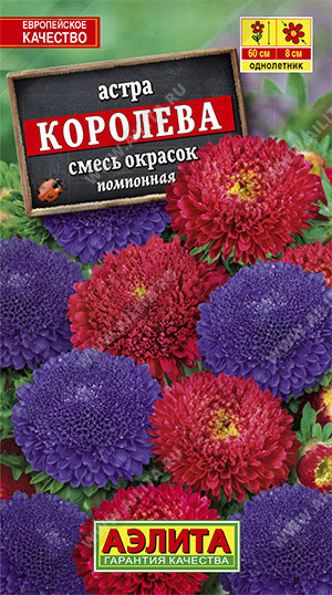 Смесь густомахровых астр с очаровательными помпонными соцветиями. Кусты высотой 55-65 см, хорошо разветвленные, крепкие, достаточно компактные. Соцветия плотные, яркой насыщенной окраски, ? 7-8 см. Ра... Показать описаниестения цветут в средние сроки. Продолжительность цветения около 60 дней. Назначение универсальное – оформление цветников и срезка.