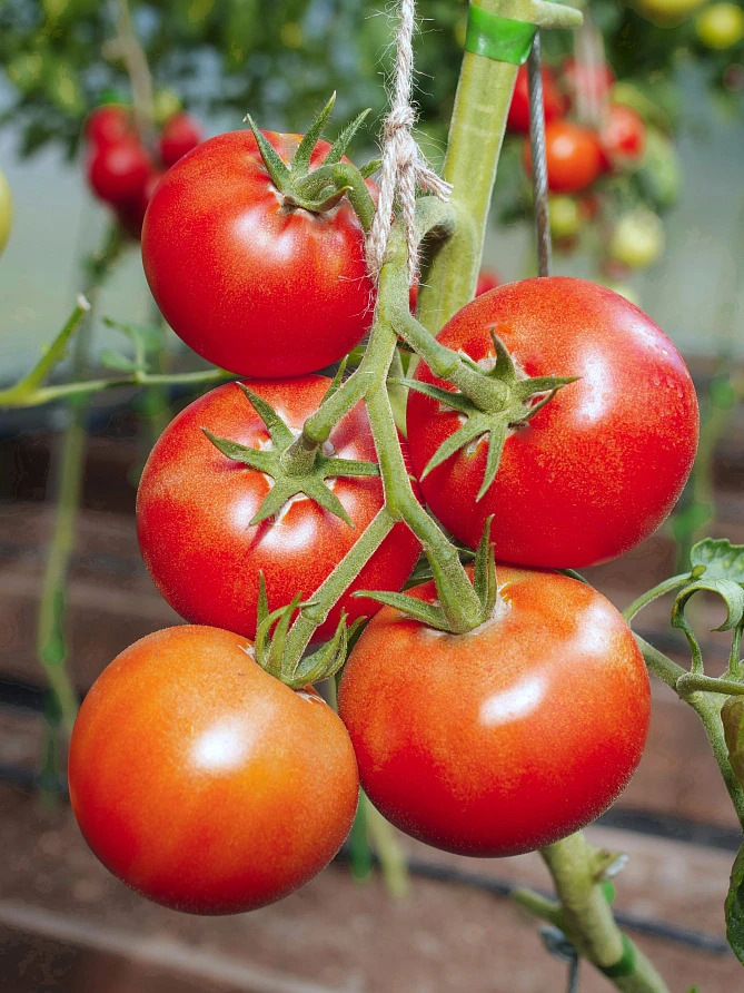 Раннеспелый индетерминантный гибрид. От всходов до начала плодоношения 100-105 дней. Первое соцветие закладывается над 9 листом. В простой компактной кисти формируется 6-8 округлых плодов, массой 150-... Показать описание250 г каждый. Томаты яркого красного цвета, плотные, с отличными вкусовыми качествами, салатного назначения. Гибрид устойчив к вирусу мозаики томата (ToMV), кладоспориозу (Ff), фузариозному увяданию (Fol) и галловой нематоде (Mi, Ma). При плотности посадки 3-4 растения/м2 рекомендуем формировать в 1 стебель, при посадке 2 растений/м2 – в 2 стебля. Урожайность более 15,0 кг/м2. Практический совет: - томаты выращивают рассадным способом; к высадке рассада готова в возрасте 55-60 дней; - семена высевают в общую либо индивидуальные ёмкости в небольшой объем грунта на глубину 0,5 см и накрывают прозрачной крышкой, при температуре +25…+280С всходы появляются на 5-7 день, сразу после появления всходов укрытие нужно снять; - по мере роста рассады необходимо следить за влажностью посевов и производить своевременные пересадки в больший объём грунта. Рекомендуем семена после покупки хранить в холодильнике.