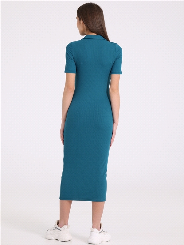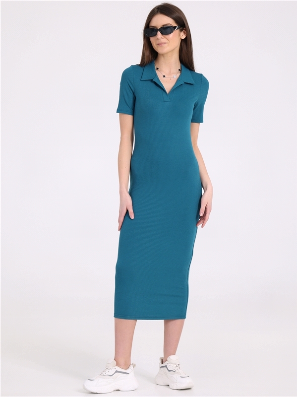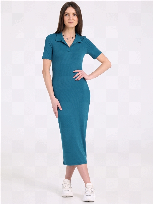 Стильное платье-поло выполнено из ластика - эластичного вискозного полотна в рубчик. Изделие прилегающего силуэта с короткими рукавами и v-образным вырезом горловины с классическим воротником. Отличны... Показать описанией выбор на каждый день! Уход: только машинная стирка (руками не стирать!) при температуре 40 градусов, без предварительного замачивания. Состав: ластик / вискоза 95% + лайкра 5%.