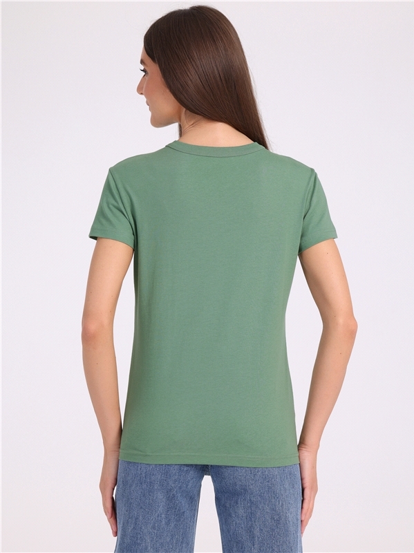 Женская футболка выполнена из кулира - легкого хлопкового полотна. Изделие прямого покроя с короткими рукавами и глубоким V-образным вырезом горловины. Уход: только машинная стирка (руками не стирать!... Показать описание) при температуре 40 градусов, без предварительного замачивания. Состав: кулир / хлопок 100%.