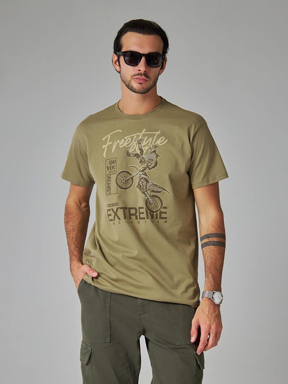 Цвет: хаки Состав: 100%Хлопок Материал: TR Plain Вес материала: 160 Фит: Regular fit ID: 154049 Описание Мужская футболка F5, Regular fit (полуприлегающий силуэт), круглый вырез горловины, короткий ру... Показать описаниекав. Выполнена из классического трикотажного полотна.