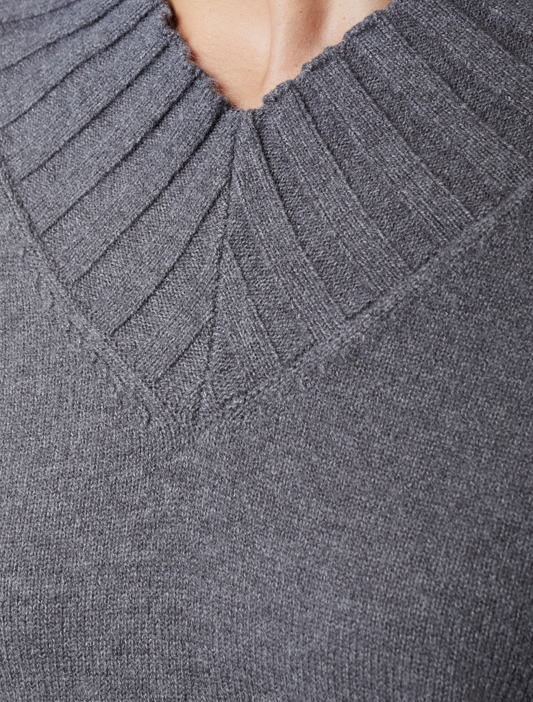 Состав: 52%ПАН (акрил) 33%ПЭ 8%ПУ 7%Кашемир Плотность: 7 GG Размер товара на первом фото: 42 Джемпер выполнен из мягкой пряжи с кашемиром. Изделие дополнено высоким V-вырезом с широкой рибаной. Мягкая... Показать описание пряжа очень приятная к телу, поддержит комфорт на протяжении всего дня, при этом не перегревая. Сочетается в костюме с брюками D38.013, D38.012 и юбкой D36.016
