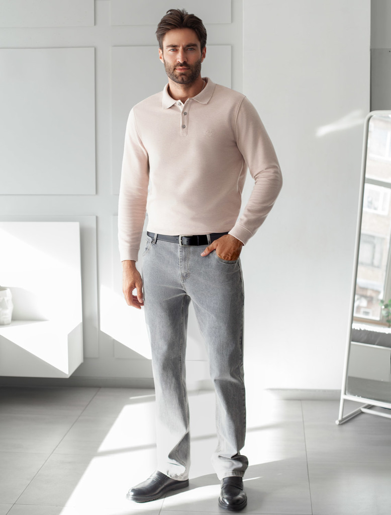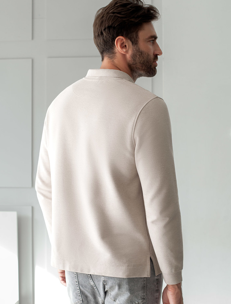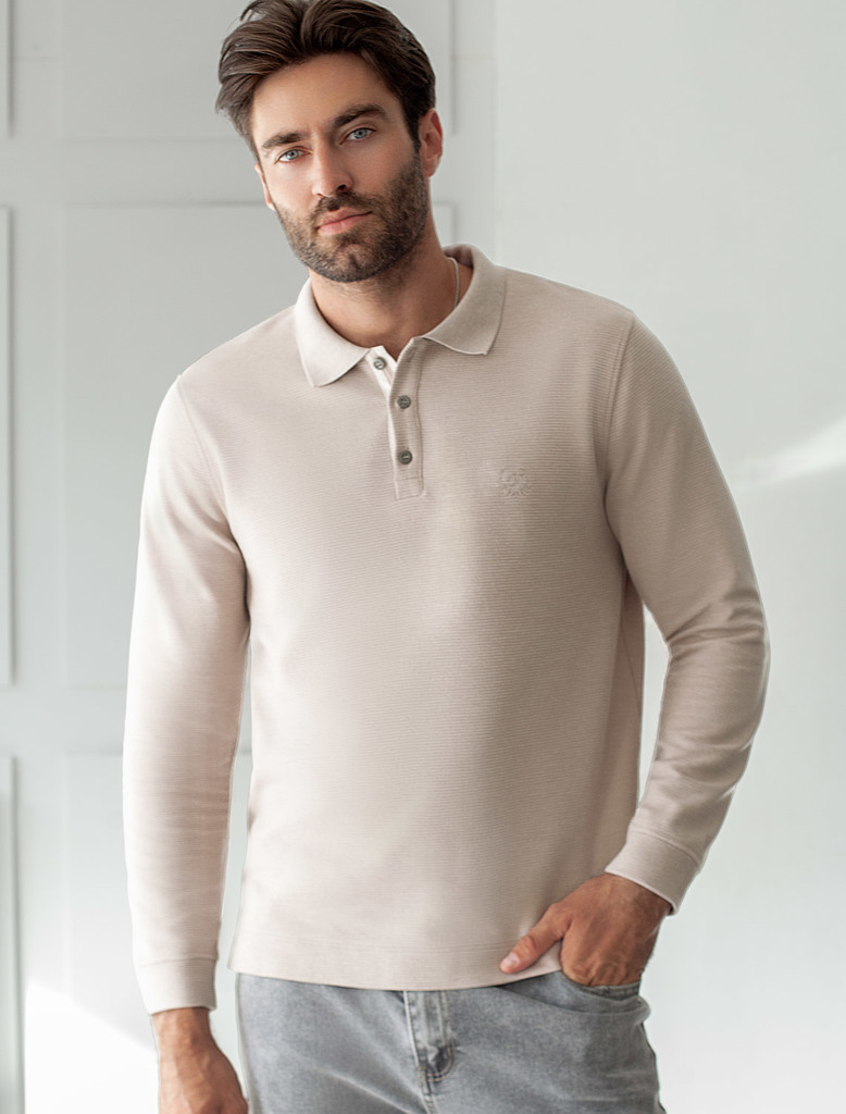 Состав: 80%Хлопок 20%ПЭ Плотность: 300 Г/м2 Стильный лонгслив светло-кофейного цвета с эффектом меланж с плетеным воротником поло с застежкой на металлические пуговицы выполнен из премиального хлопка ... Показать описаниев сочетании с эластаном .Невероятно мягкая ткань из натуральных волокон - она едва ощутима на коже и словно обнимает тело. Материал при касании кажется бархатистым, при движении он словно повторяет все мельчайшие линии фигуры. По свойствам материал сочетает в себе практичность и нежность: отлично пропускает воздух, сохраняя ощущение свежести в течение всего дня, при этом в нем тепло в прохладную погоду. Идеально подходит для чувствительной кожи, не вызывает раздражения и дискомфорта. Удобный отложной воротник с контрастной отделкой делает образ современным и стильным, а длинные рукава с манжетами защищают руки при ветреной погоде. Поло хорошо садится по фигуре благодаря добавлению эластичных волокон — такой вариант подходит для мужчин любого роста и размеров, не стесняет движений и создает ощущение свободы и легкости. Лонгслив с пуговицами дополнен ненавязчивой вышивкой на груди в виде логотипа бренда в тон основному цвету, которая придает образу индивидуальность, не перегружая его лишними акцентами. Лаконичная вышивка служит оригинальным декоративным элементом, гармонично вписываясь в общий минималистичный облик. Такой подход делает лонг универсальным решением для тех, кто ценит простоту и стремится подчеркнуть свой вкус через детали. Легкий джемпер идеально комбинируется как с классическими брюками, так и с джинсами или шортами — универсальность этой модели оценит каждый мужчина, предпочитающий удобную одежду для активного дня. Легкий и дышащий материал делает повседневный лонгслив практичным для ношения в переменчивую осеннюю погоду, когда температура еще не слишком низкая, но уже ощущается прохлада.