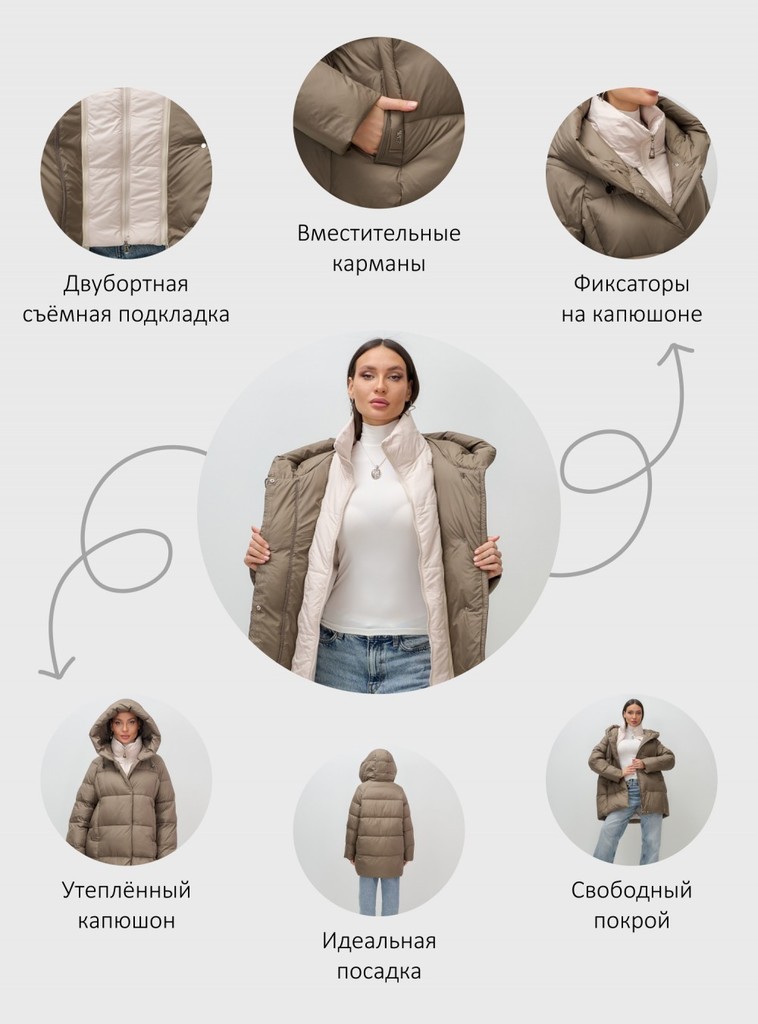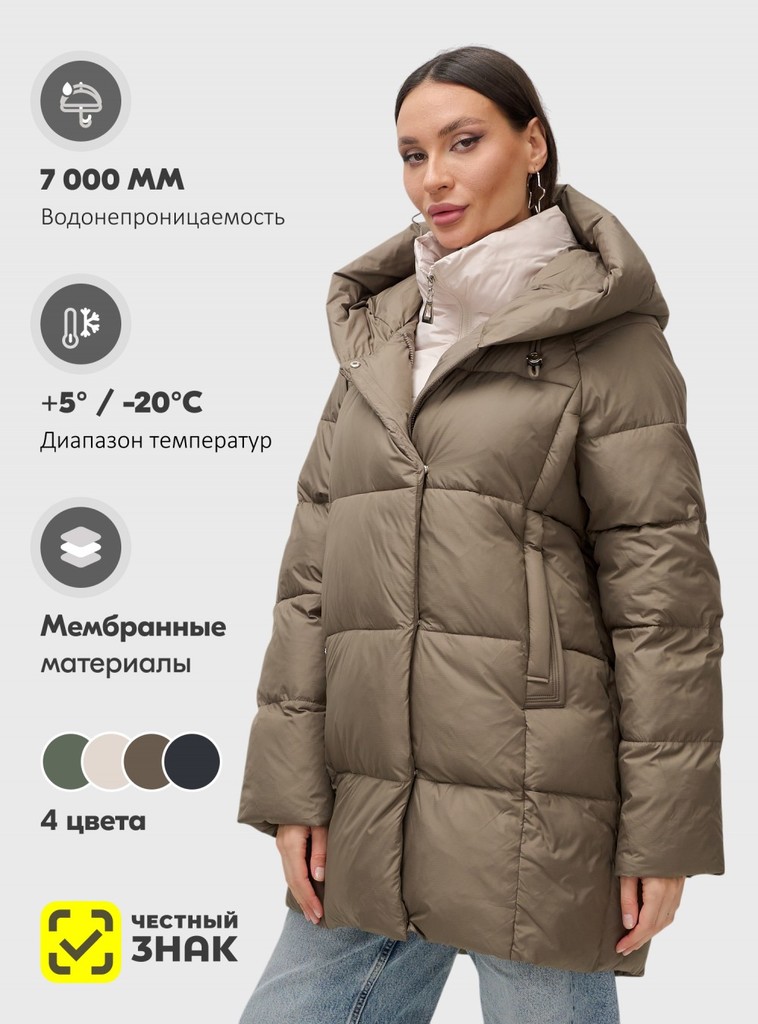 Представляем вашу идеальную зимнюю куртку — двубортную женскую модель с капюшоном, которая сочетает в себе стиль и комфорт. Эта элегантная куртка доступна в размерах от 48 до 56, что позволяет каждой ... Показать описаниеженщине найти свою идеальную посадку. Изготовленная из высококачественных мембранных материалов и полиэстера, куртка обеспечивает водонепроницаемость до 7000 мм и отлично защищает от ветра. С утеплителем плотностью 200 г/кв.м и синтепоном, она сохраняет тепло в диапазоне температур от +5° до -20°, что делает её идеальным выбором для холодной зимы. Куртка имеет укороченный подол, внутренние карманы и фиксатор на капюшоне, что добавляет удобства в повседневной носке. Прямой и свободный покрой позволяет сочетать её как с офисным, так и повседневным стилем. Длинные рукава на манжете и съемный воротник придают модели дополнительную функциональность. Вас порадует разнообразие расцветок: черный, коричневый, бежевый и хаки, а также стильные декоративные элементы, такие как воротник, капюшон и карманы с пуговицами. Эта куртка не только практична, но и выглядит невероятно стильно. Покупая эту куртку, вы получаете быстро сохнущий, дышащий и гипоаллергенный материал, который будет служить вам долго. Не упустите возможность обновить свой зимний гардероб с этой великолепной курткой из коллекции Осень-зима 2025! Бренд Visdeer