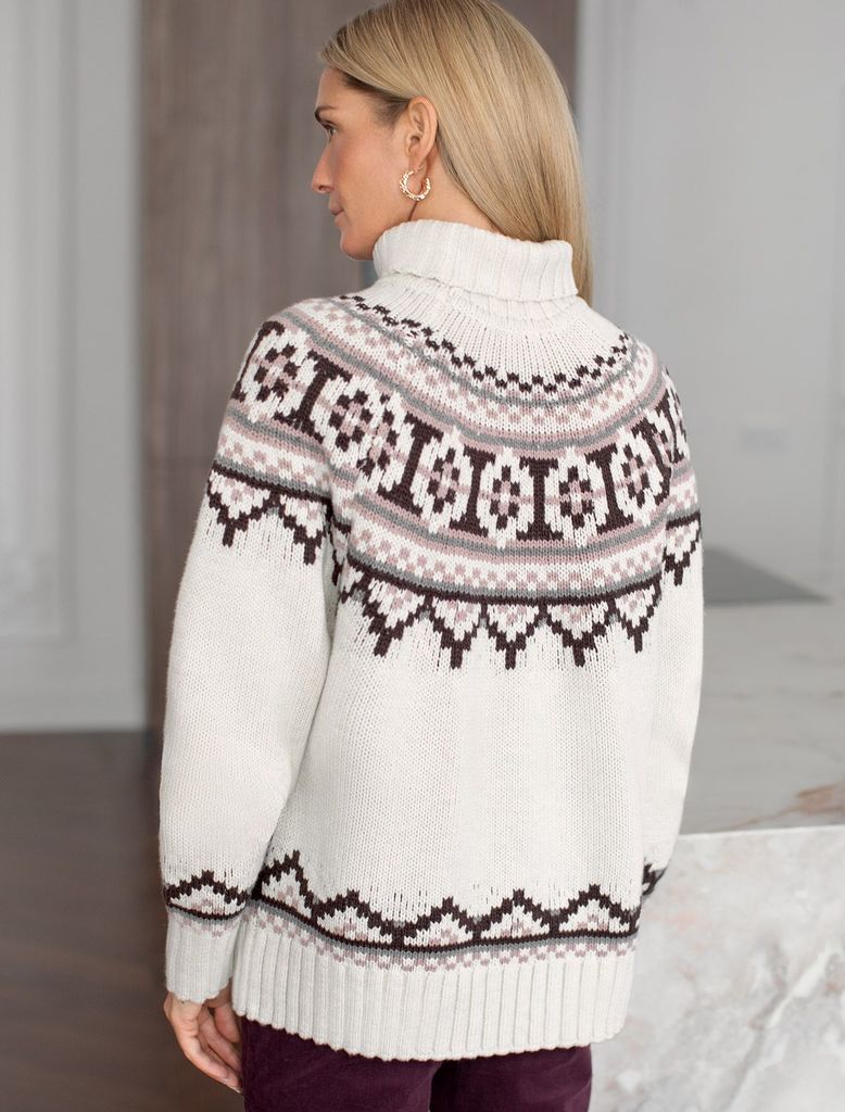 Состав: 60%Хлопок 40%ПАН (акрил) Параметры модели на первом фото: Рост 187, бюст 102, талия 87, бедра 103 Свитер крупной фактурной вязки выполнен из мягкой хлопковой пряжи с акрилом. Теплая фактура из... Показать описаниеделия подчеркнута скандинавским узором. Длинный ворот защитит от ветреной погоды и поможет собрать, уютный комплект в расслабленном стиле в осенне-зимний период. Не препятствует циркуляции воздуха, но при этом хорошо сохраняет тепло и не колется, поэтому свитер комфортно носить даже на голое тело. Модель дополнена фирменным логотипом бренда.