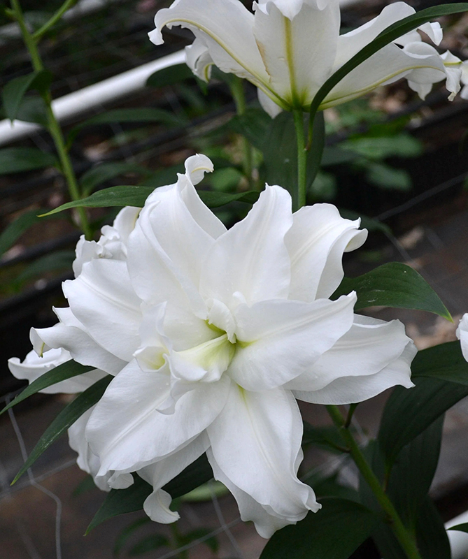 НОВИНКА Цветки этого сорта имеют диаметр 18-20 см и белую окраску с лаймовым основанием. Лепестки широкие, махровые, с отогнутыми кончиками и глянцевой поверхностью. Высота растения может достигать до... Показать описание 100 см.