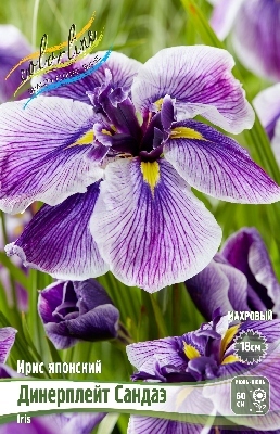 МАХРОВЫЙ белый с ярко-фиолетовой сеткой по всей поверхности лепесткой, с желтым мазком у центра.цветок 18см, Н-60см