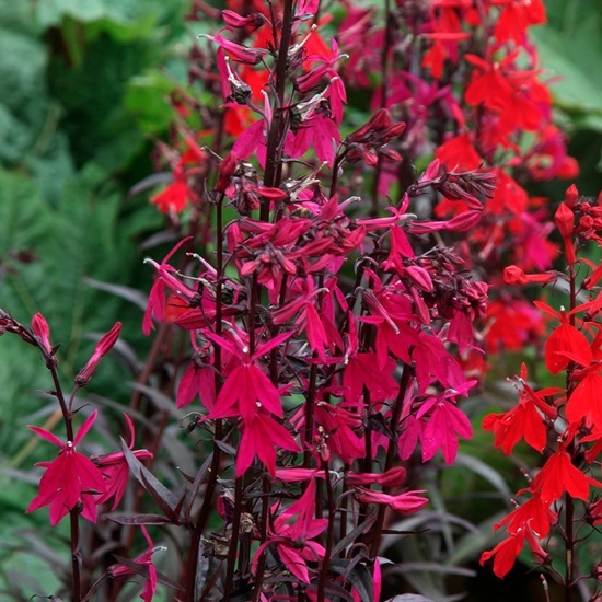 красный, листва тёмно-зелёная, с фиолетовыми прожилками, кантом и стеблями, h-120см