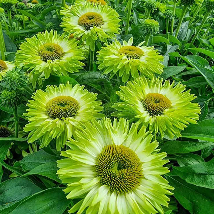 МАХРОВАЯ кончики лепестков лаймово-зеленые, у центра белые, сердцевина желтовато-зеленая, плотная, Н-50см