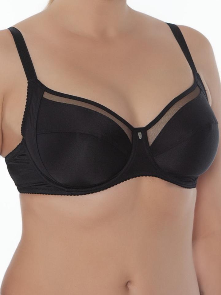 Классический бюстгальтер выполненный из эластичного полотна и трикотажного полотна. В верхней детали чашки вставка из эластичного сетчатого полотна. Модель на каркасах, мягкие чашки с двойным членение... Показать описанием, боковая корректирующая деталь, расширенная бретель. Используется четырехрядная застежка, что позволяет идеально отрегулировать объем бюстгальтера. Ширина бретелей и застежки изменяется в зависимости от размера бюстгальтера. Отделка — подвеска.