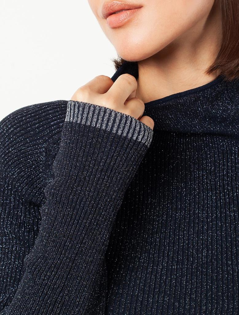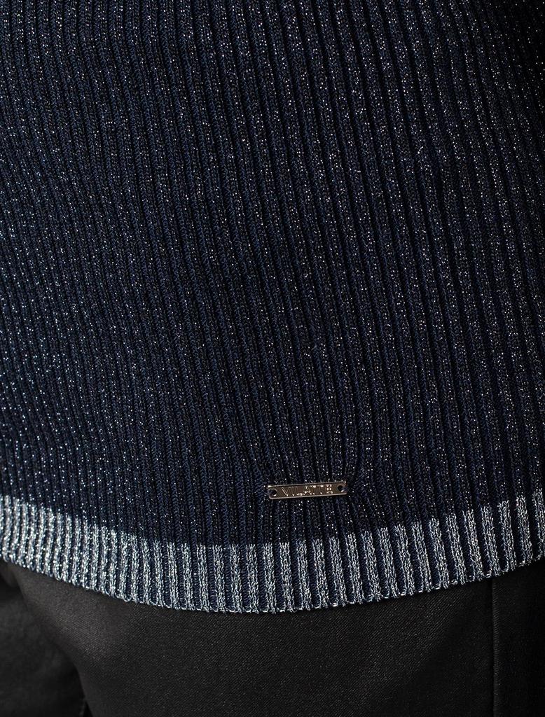 Состав: 72%Вис 28%Мет (люрекс) Параметры модели на первом фото: Рост 177, бюст 78, талия 59, бедра 90 Свитер фактурной вязки выполнен из эластичного трикотажа на основе вискозы. Добавление в состав пр... Показать описаниеяжи мягкого люрекса создает праздничное сияние. Изюминка модели – контрастное сочетание на манжетах и по нижнему краю. Идеально сидит по фигуре, подчеркивая силуэт. Изделие не колется и комфортно в носке даже на голое тело. Дополнительным украшением служит металлический логотип бренда.