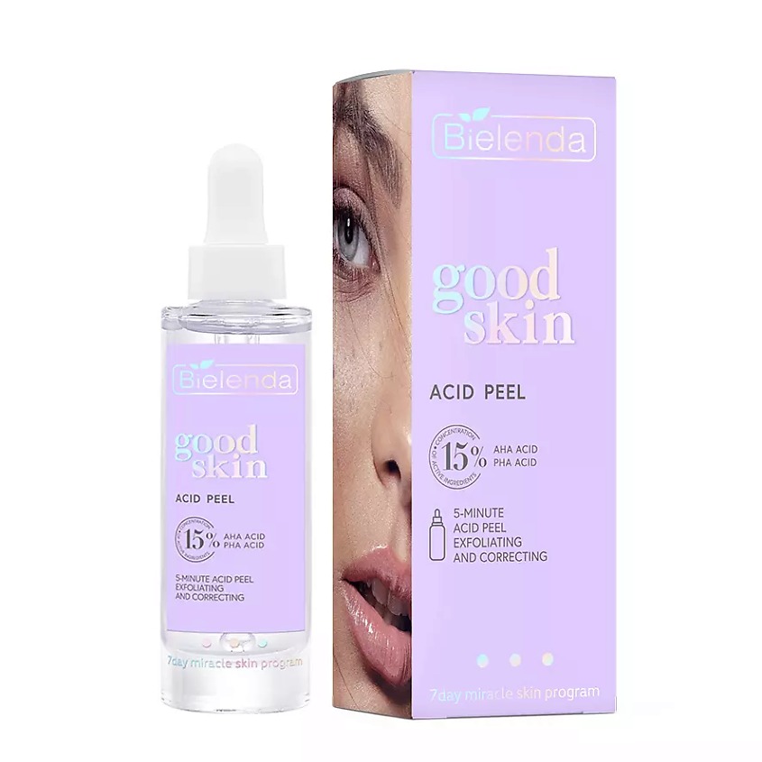 Попробуйте 5-минутную кислотную сыворотку Bielenda Good Skin Acid Peel – это концентрированное средство для проблемной кожи с неровным тоном. Благодаря сочетанию кислот мягко и эффективно отшелушивает... Показать описание омертвевшие клетки эпидермиса, способствует уменьшению пигментации и несовершенств. AHA+PHA кислоты – обладают увлажняющими и нормализующими свойствами. Также сыворотка нормализует выработку кожного жира и способствует сужению пор.
