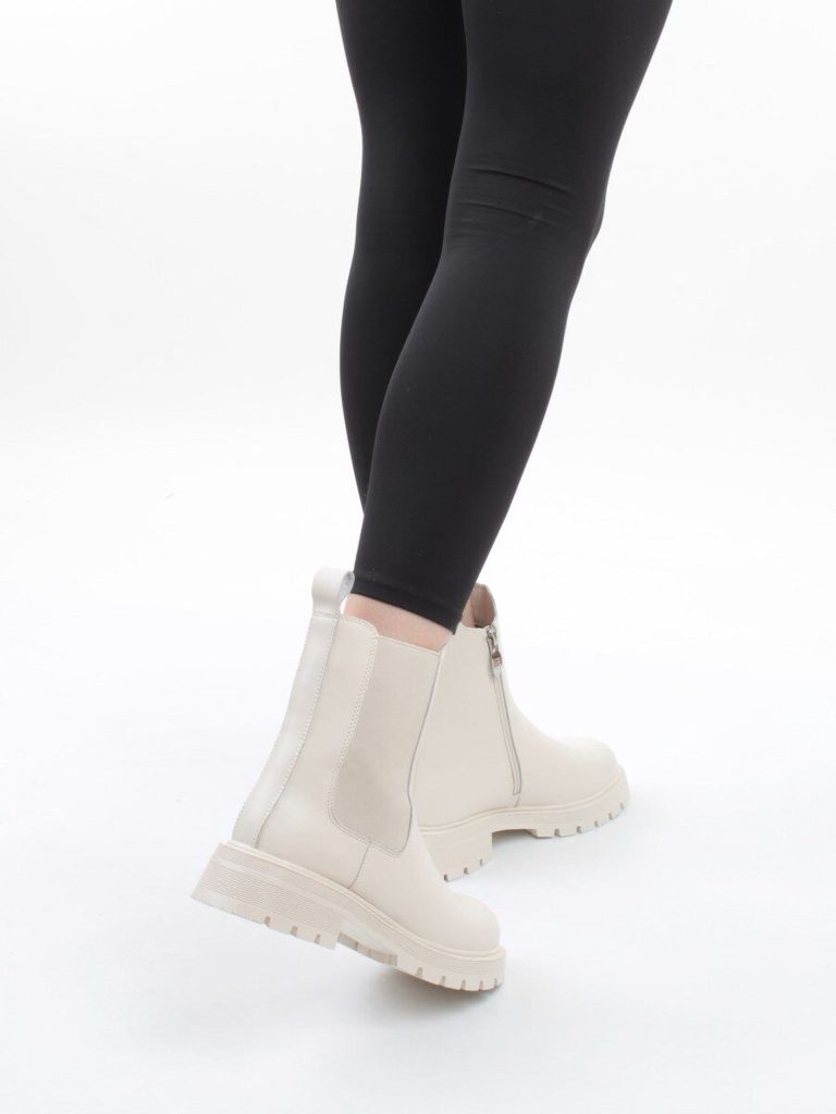 Ботинки зимние женские (натуральная кожа, 100% шерсть) Артикул: 04-PAT177-2Z MILK Основной материал: натуральная кожа. Вид кожи основного материала: гладкая. Подкладка: 100% шерсть. Стелька: 100%... Показать описание шерсть. Вид подошвы: стандартная. Материал подошвы: термопластичная резина. Способ соединения подошвы: клееная. Толщина подошвы: 2,7 см. Каблук: стандартный. Высота каблука: 4,5 см. Тип мыска: закрытый. Тип задника: закрытый. Застежка: молния сбоку. Декоративная вставка из резинки с внешней стороны (по типу челси). Витринный образец 39-го размера: Высота обуви по центру: 22,0 см. Объем щиколотки: 33,0 см. Ширина подошвы: 10,5 см. Высота голени: 17,0 см. Длина стельки 25,0 см. Чистый вес ботинок без коробки: 980 гр. Цвет: Молочный. Длина стельки каждого отдельно взятого размера: 36  длина стельки 23,0 см. 37  длина стельки 23,5 см. 38  длина стельки 24,5 см. 39  длина стельки 25,0 см. 40  длина стельки 25,5 см.