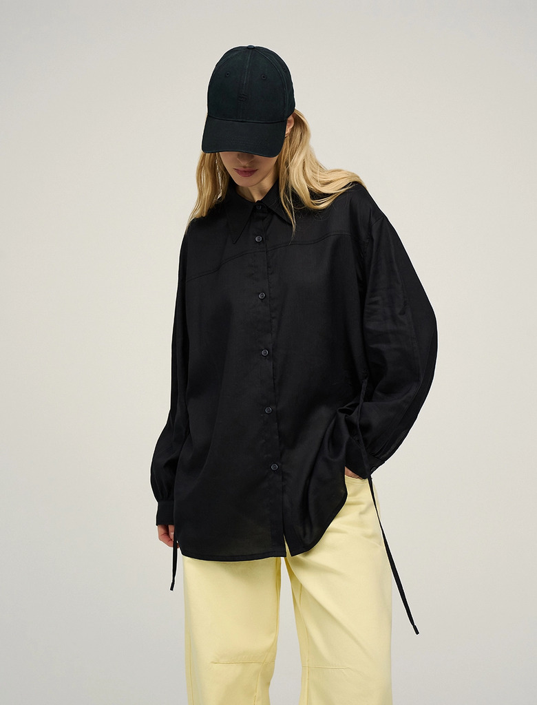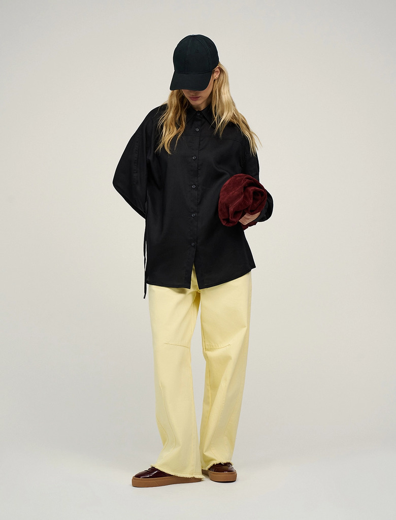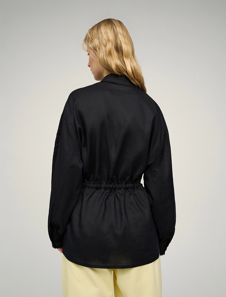 Видео: https-//hassfashion.ru/upload/iblock/670/wcinw77ejsljh5yhbwqfewpdg1mthmcg.mp4 весна-лето 78% Крапива, 19% Хлопок, 3% Шёлк Рубашка оверсайз силуэта с отложным воротником. Линия плеча спущена. По... Показать описание передней части изделия - застежка на пуговицы. На уровне выше груди декоративный рез. Манжеты с шлицами застегиваются на пуговицы. Выполнена из натуральных, дышащих материалов - крапива, хлопок и шелк. Представлена в синем цвете.