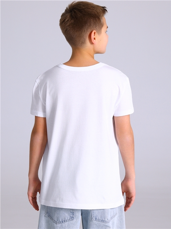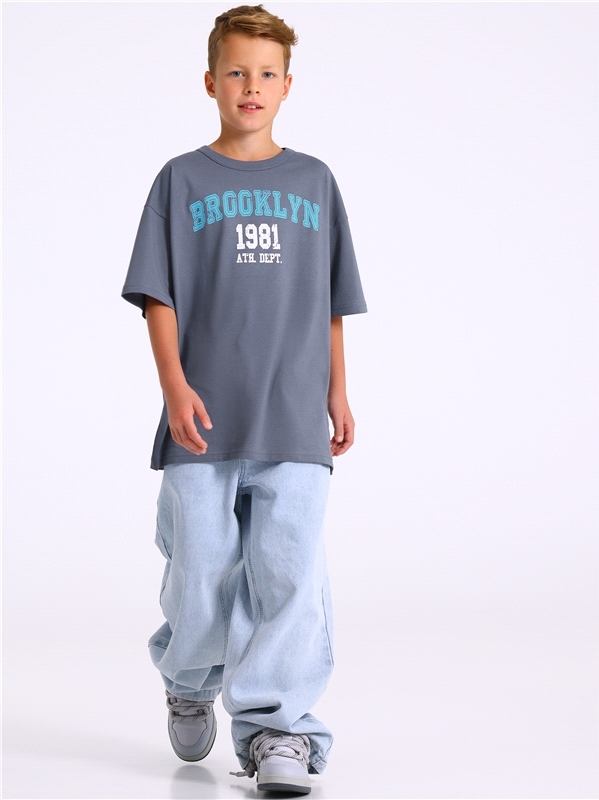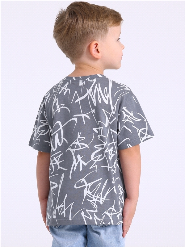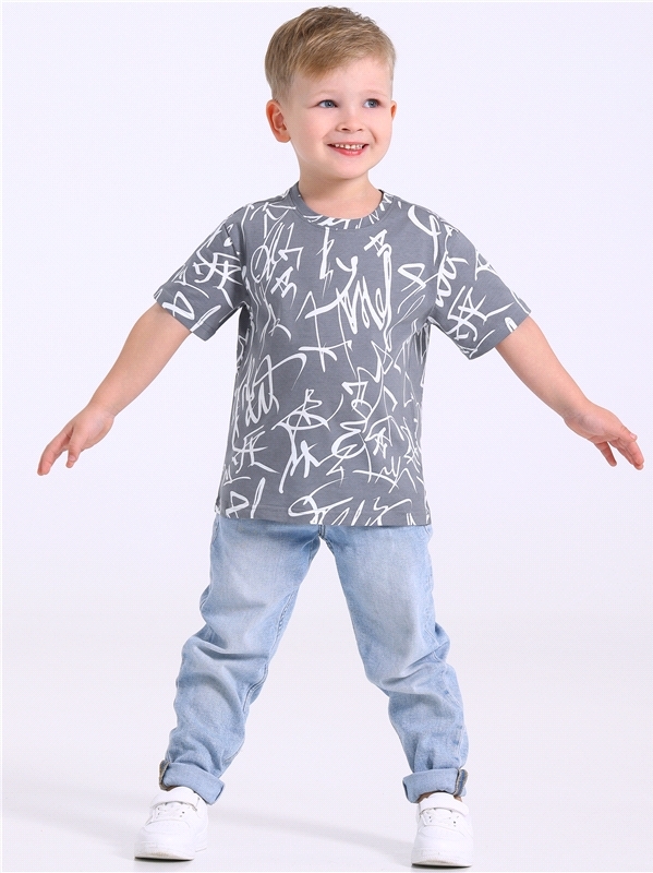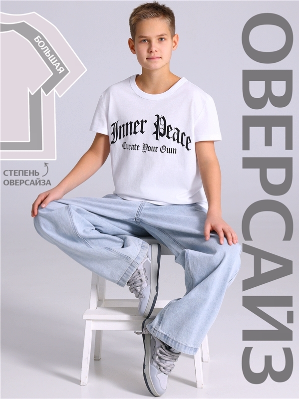 Оверсайз футболка для мальчика выполнена из кулира - легкого хлопкового полотна. Изделие прямого покроя с короткими рукавами и округлым вырезом горловины, украшено печатью. Уход: только машинная стирк... Показать описаниеа (руками не стирать!) при температуре 40 градусов, без предварительного замачивания. Изделия с печатью или декором перед стиркой необходимо вывернуть на изнаночную сторону. Состав: кулир / хлопок 100%.