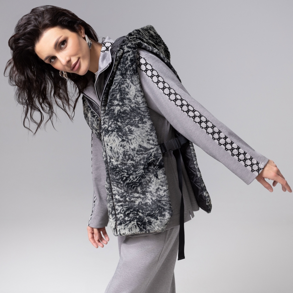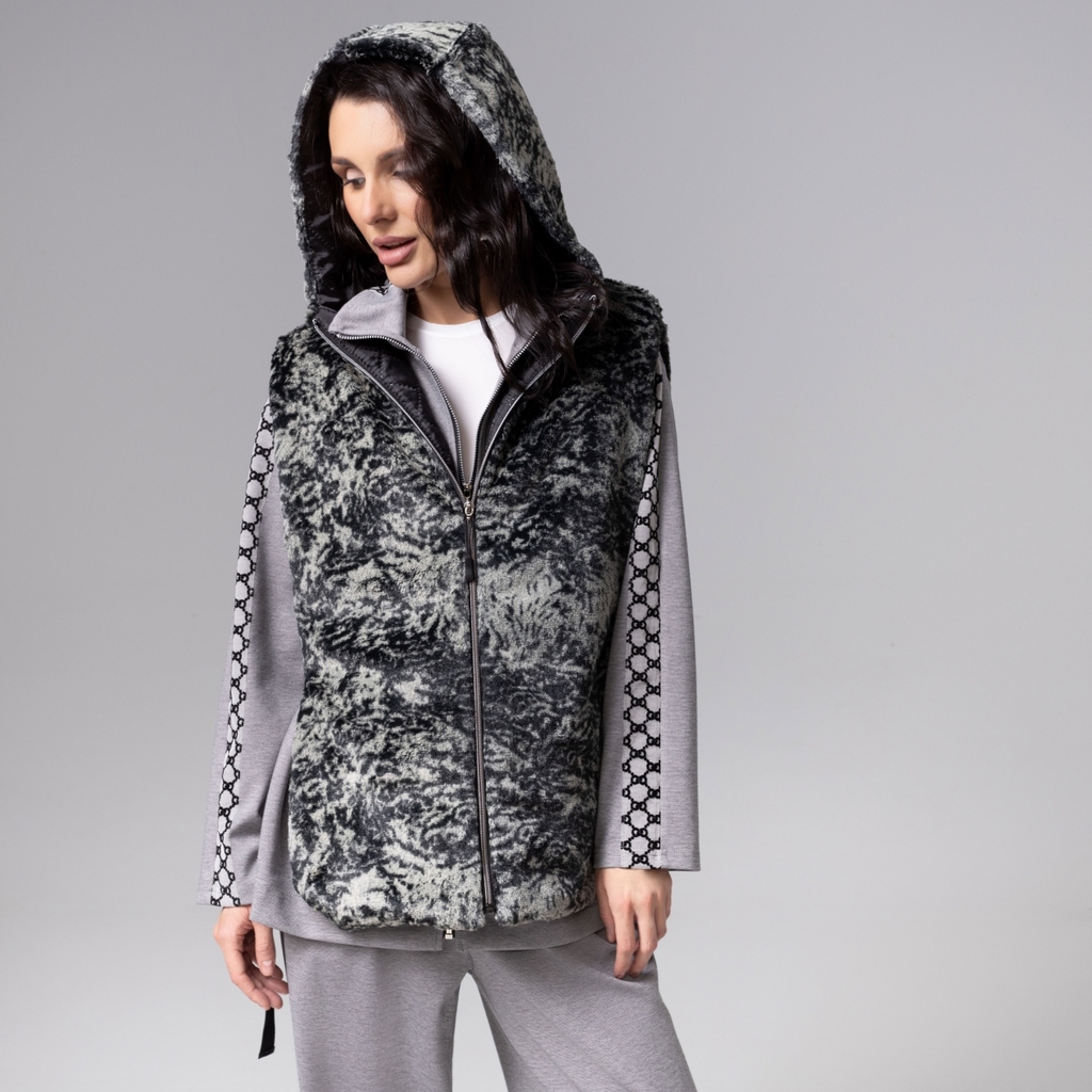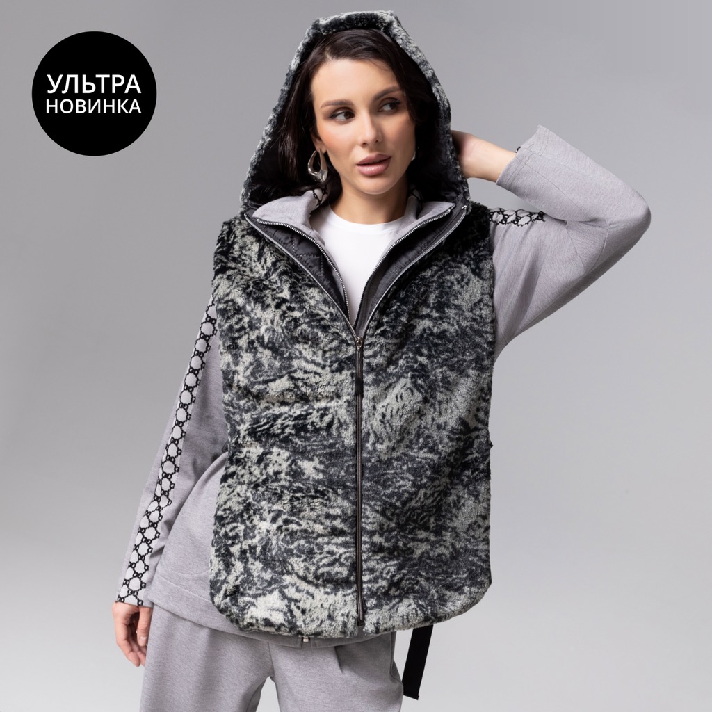 ТН ВЭД: 6110909000. Состав: «Экомех» шиншила, стёганный подклад (100% п/э) Плотность ткани: Плотная. Тип ткани: Текстиль, трикотаж. Вид застежки: Молния. Декоративные элементы: Другое. Дополнительный ... Показать описаниецвет ткани: Серый. Карманы: Нет. Основной цвет ткани: Черный. Отрезная талия: Нет. Подклад: Есть. Резинка по талии: Нет. Рисунок/раппорт: Нет, все изделия идентичны Сезон: Зима. Силуэт: Свободный. Стиль: Повседневный. Параметры модели на фото: Грудь: 84 см. Талия: 61 см. Бёдра: 91 см. Рост: 175 см. Размер на модели: 44. Длина изделия: * one size - 67 см. Вес товара, кг: * one size размер - 0.44. Габариты товара (ДхШхВ), см.: * one size размер - 32 х 32 х 9. Подробное описание: 86388697