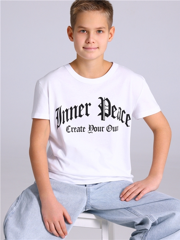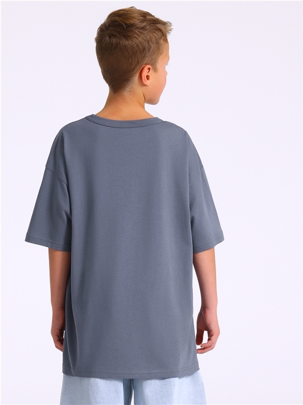 Оверсайз футболка для мальчика выполнена из кулира – легкого хлопокового полотна. Изделие прямого покроя, с короткими рукавами, со спущенной линией плеча. Круглый вырез горловины обработан эластичной ... Показать описаниебейкой из полотна компаньона. На полочке печать. Уход: только машинная стирка (руками не стирать!) при температуре 40 градусов, без предварительного замачивания. Изделия с печатью перед стиркой необходимо вывернуть на изнаночную сторону. Состав: кулир / хлопок 100%.