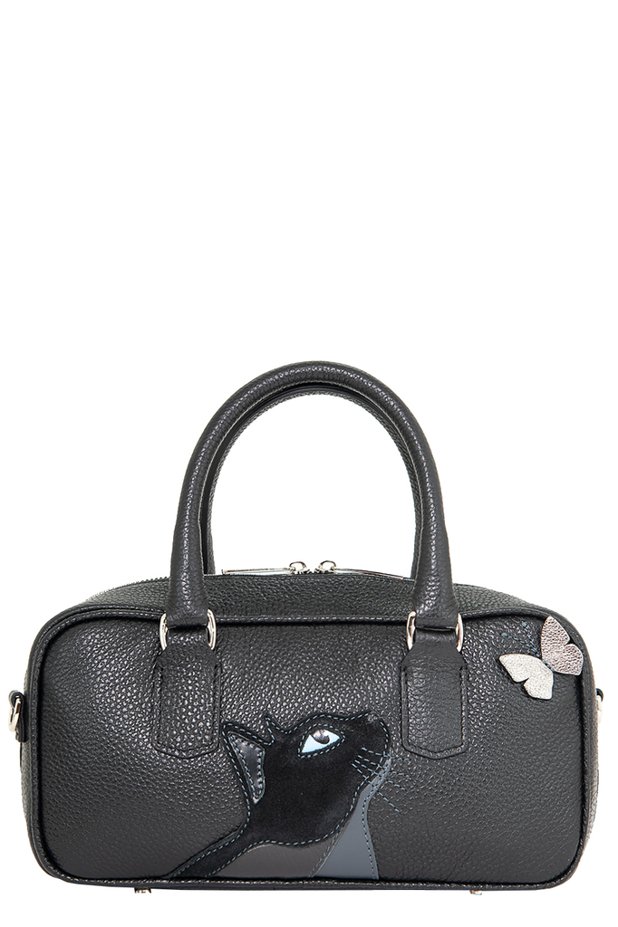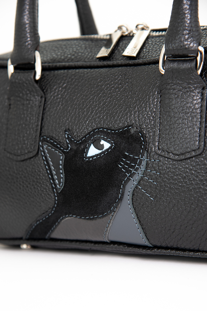 Сумка женская с аппликацией "Котик" полужесткой формы со съемным регулируемым ремнем через плечо. Сумка застегивается на молнию и имеет одно отделение. Сумка на подкладке. Внутри сумки карман на молни... Показать описаниеи и большой открытый карман для телефона и мелочей. Металлические ножки для защиты дна сумки. Размеры 29х18х9см