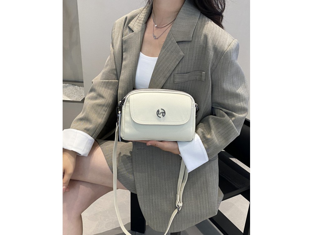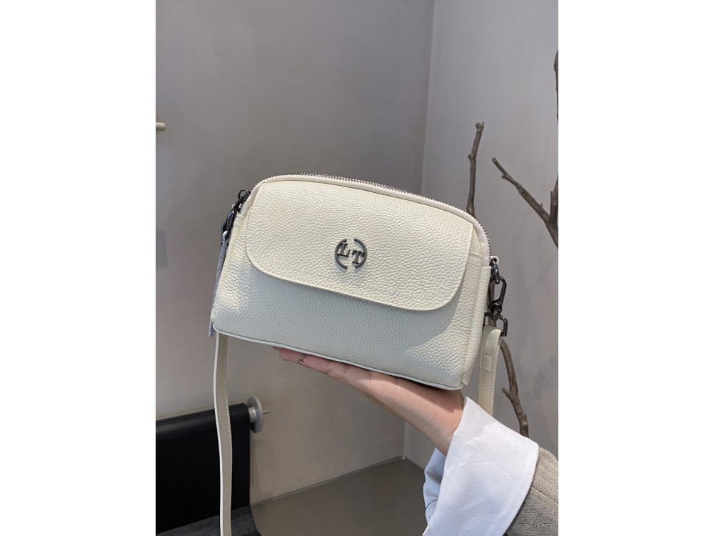 Сумка женская небольшого размера с несъемным регулируемым ремнем через плечо. Сумка застегивается на клапан с магнитом и имеет одно отделение. Внутри есть молния. Сумка без подкладки. Внутри расположе... Показать описаниены два кармана на молнии из плотного материала. Размеры 23х17х7 см