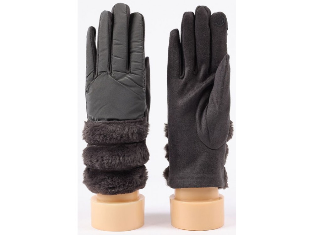 РАСПРОДАЖА! Размер: единый Состав: болонья, велюр, искусственный мех Подклад: трикотажный велюр Описание: благодаря наличию на пальцах особой нити в виде кошки любыми современными устройствами мо... Показать описаниежно пользоваться, не снимая перчаток - система TOUCH SCREEN