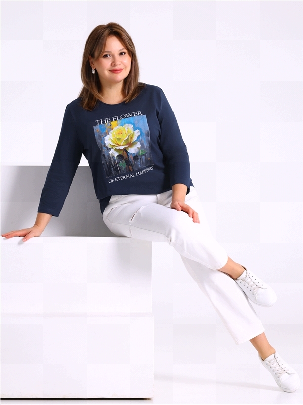 Артикул: 1ЖДЛД2256804 Размер: 112-164 Цвет: темно-синий77 / - / Картина с розой / - / - / - Раздел: 557069