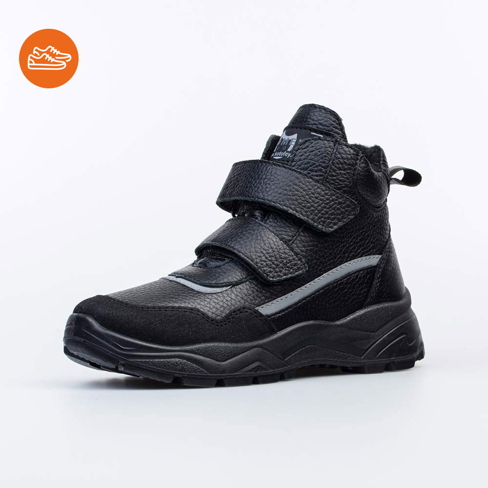 Утепленные кожаные ботинки идеально дополнят весенний или осенний образ мальчика-подростка. Верх выполнен из натуральной кожи в сочетании природных цветов и оттенков. Светоотражающие элементы повышают... Показать описание безопасность в темное время суток. Подкладка из байки и войлочная стелька хорошо сохраняют тепло и отводят от стоп влагу. Внутри дополнительная защита пятки от истирания - кожаная накладка поверх утеплителя. Ботинки с липучками, которые надежно фиксируют обувь на ногах и дают возможность быстро обуваться и разуваться. Двухцветная подошва из легкого и амортизирующего полиуретана дополнена термополиуретаном для повышения прочности. Обувь анатомически-правильная: выполнена с учетом особенностей подростковой стопы и имеет необходимые элементы поддержки. Сделано в России.