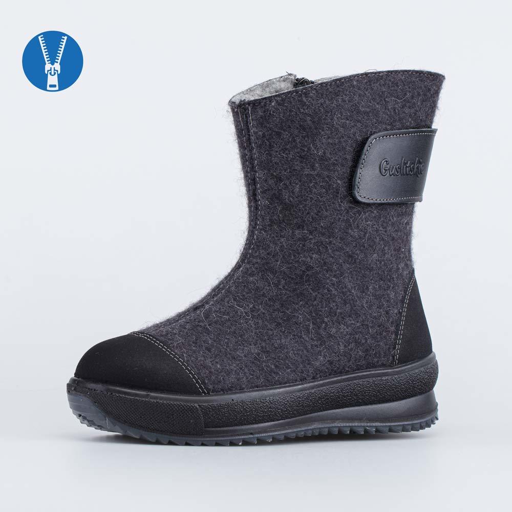 Женские валенки серого цвета имеют голенище средней высоты. Верх и стелька - из натурального войлока, на 100% состоящего из овечьей шерсти. Он дарит ногам целебное сухое тепло и оказывает массажный эф... Показать описаниефект. Подкладка из шерстяного меха, более чем на 80% состоящего из овечьей шерсти, обеспечивают тепло даже в лютый мороз. Носочная и пяточная части защищены кожаными накладками с полиуретановым покрытием. Они предохраняют войлок от воздействия влаги и реагентов. Застежка-молния позволяет быстро обуваться и разуваться. Подошва из ПУ (полиуретана), обладающая хорошей амортизацией, дополнена резиновой накладкой для придания устойчивости на зимних поверхностях. Модель анатомически правильная: пяточная часть приподнята по отношению к носочной, а стелька из натурального войлока/шерсти приформовывается к своду стопы, создавая индивидуальную форму внутреннего пространства в обуви. Сделано в России.