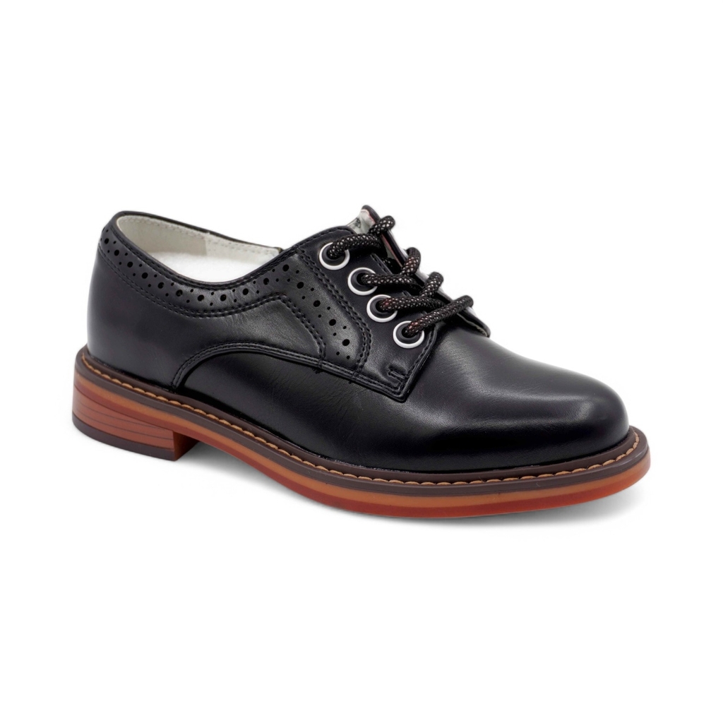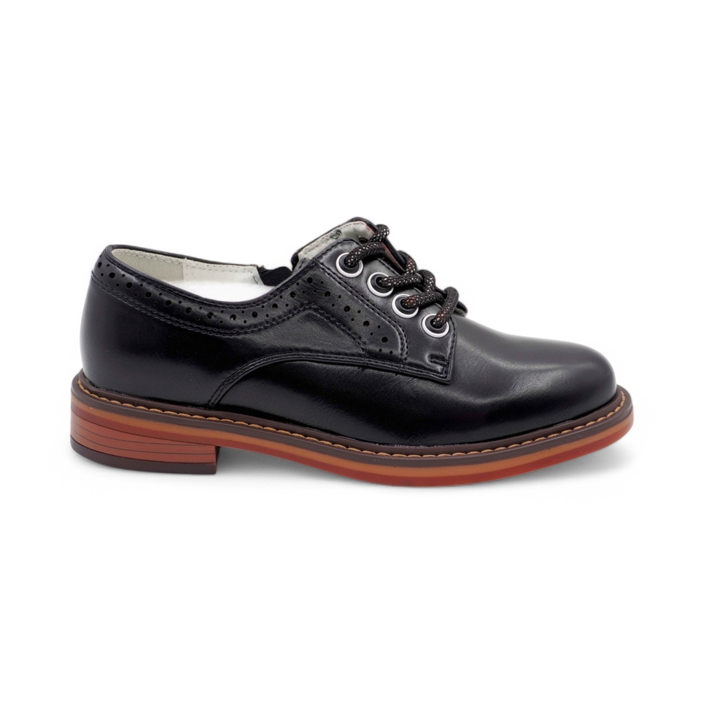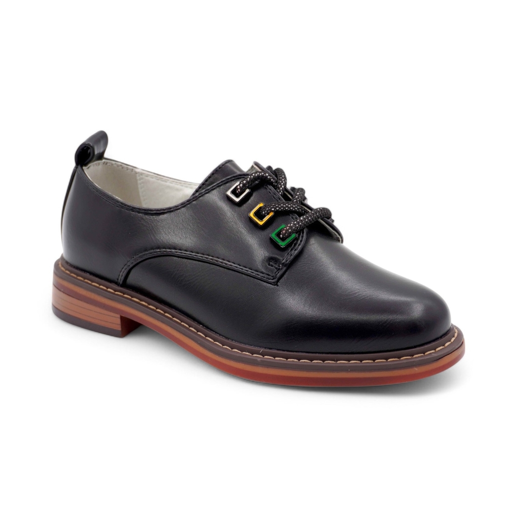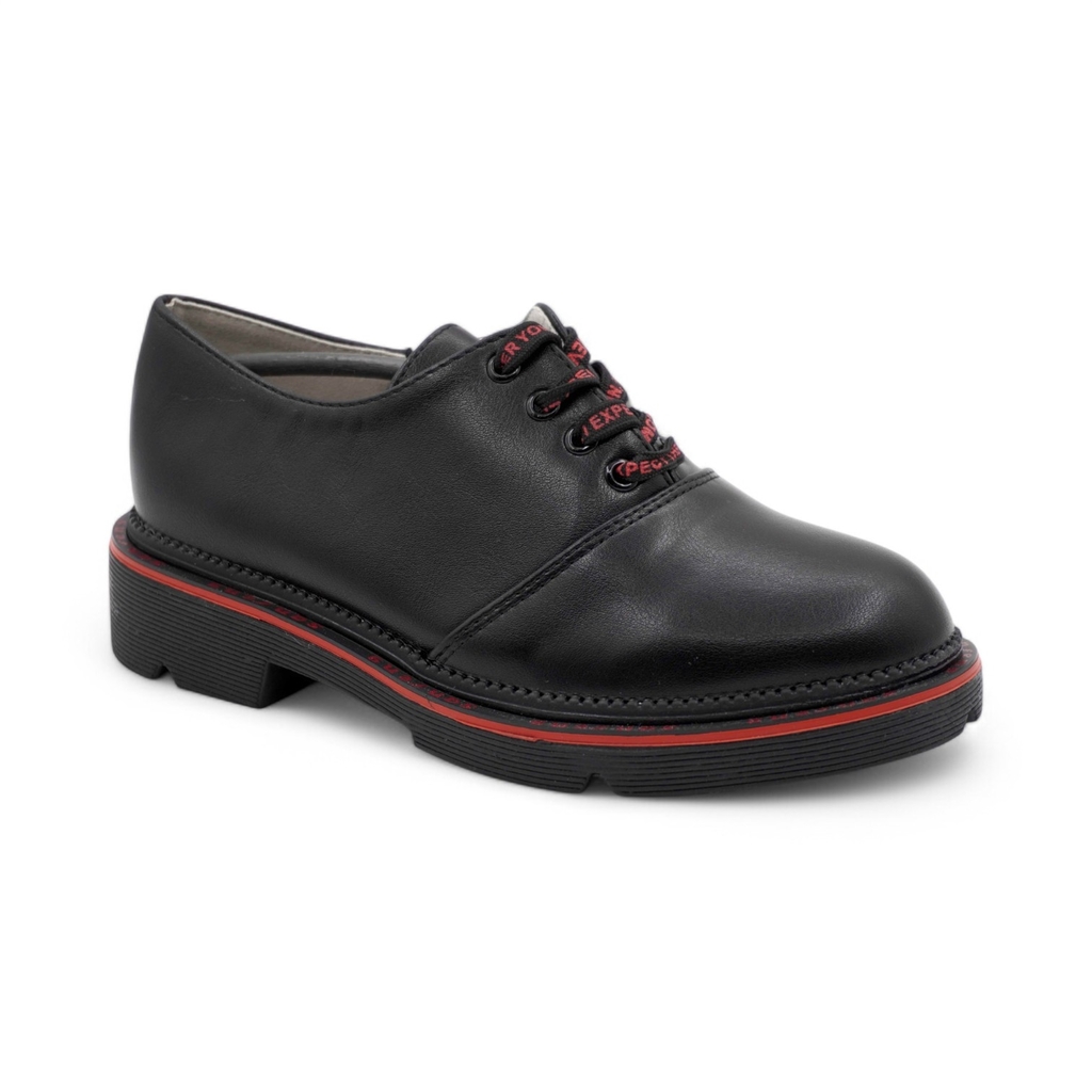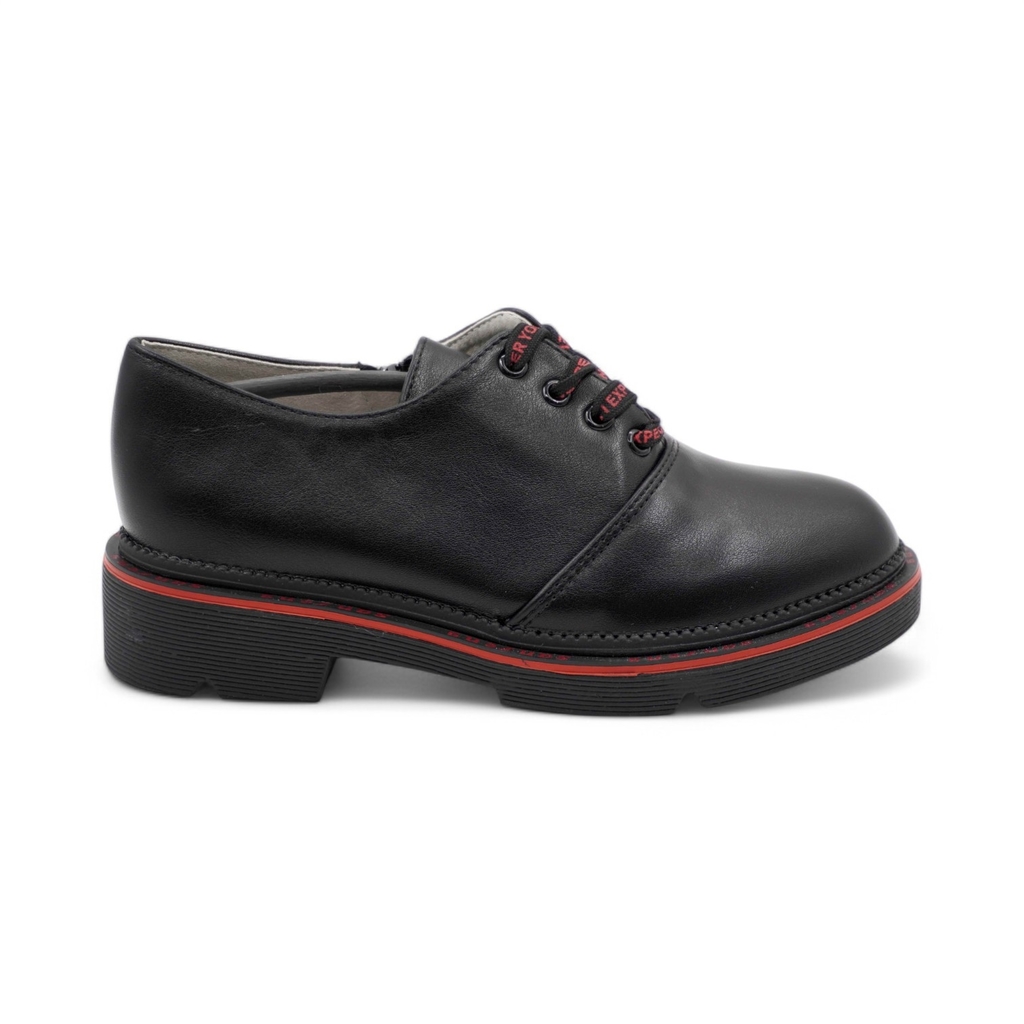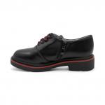 Черные кожаные ботинки для девочки имеют байковый утеплитель и подходят на холодное время осени или весны. Верх выполнен из гладкой натуральной кожи черного цвета. Подкладка из байки (больше 80% натур... Показать описаниеальная овечья шерсть) и войлочная стелька хорошо сохраняют тепло. Внутри защита пятки от истирания - кожаная накладка поверх утеплителя. Войлочная стелька снабжена шелковой петелькой, чтобы было удобно вынимать для проветривания. Шнурки позволяют отрегулировать обувь по подъему, а молния - быстро обуваться и разуваться. Массивная тракторная подошва из ТЭП (термоэластопласта) обеспечивает дополнительную теплоизоляцию и устойчивость на скользких поверхностях. Классический дизайн позволяет сочетать ботинки с разными образами. Высота подошвы ~ 4см. Сделано в России, Егорьевск.