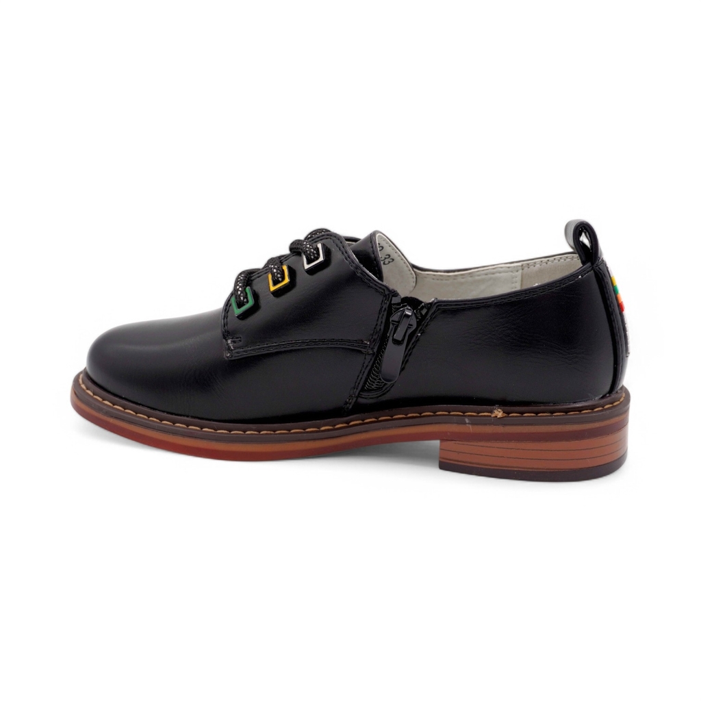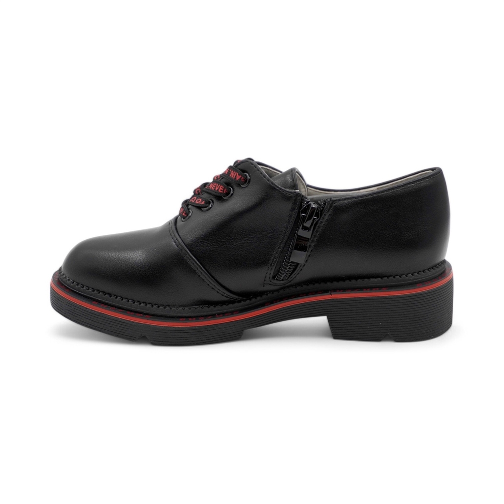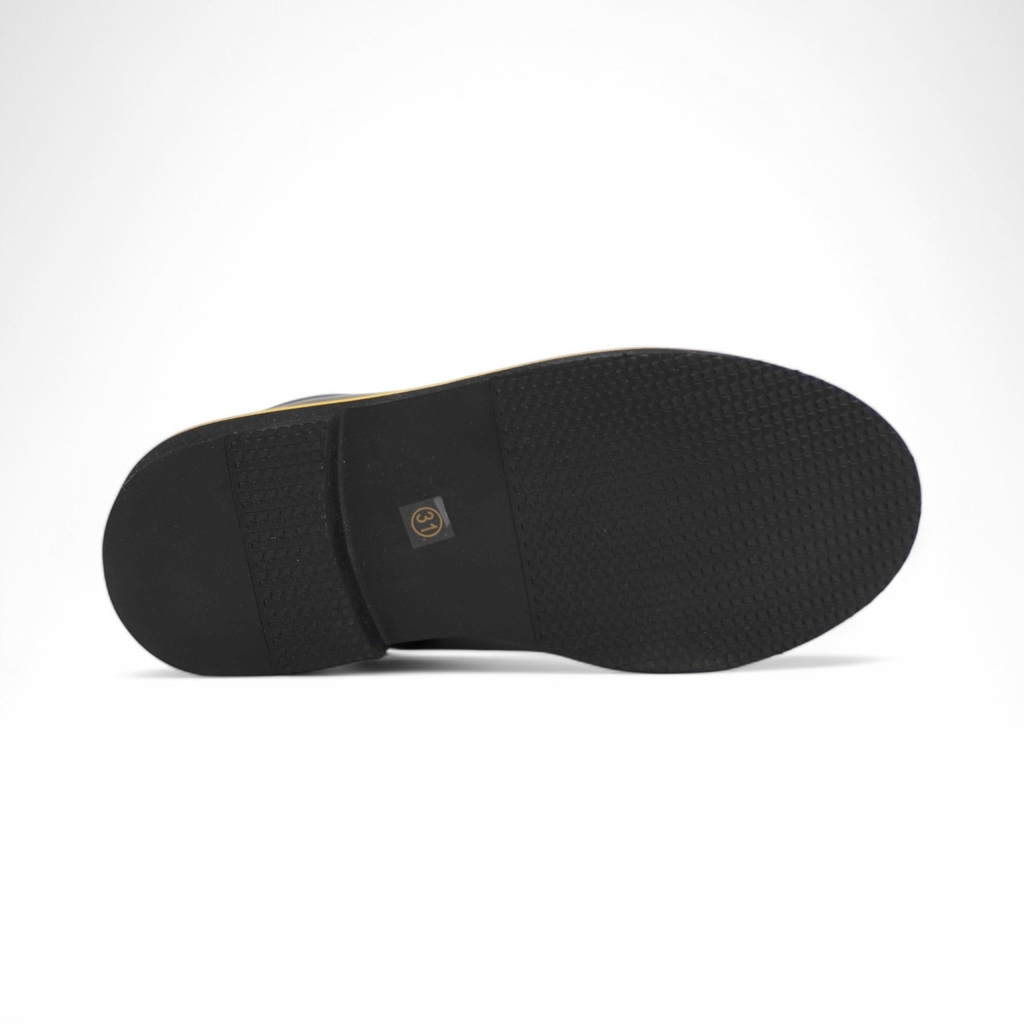 Демисезонные ботинки для девочки на байковой подкладке черного цвета Верх выполнен из натуральной кожи - износостойкого, гипоаллергенного и дышащего материала. Подкладка и стелька из байки, которые на... Показать описание 80% состоят из натуральной шерсти, хорошо сохраняют тепло. Мягкий манжет снижает вероятность натирания. Шнурки позволяют отрегулировать обувь по подъему, а молния - быстро обуваться и разуваться. Подошва из ЭВА (этиленвинилацетата) - гибкая, амортизирующая и очень легкая. Модель анатомически правильная: есть небольшая приподнятость пятки по отношению к носку, в меру жёсткий задник и круглый носок. А стелька из натуральной шерсти приформовывается к своду стопы, создавая индивидуальную анатомическую форму внутреннего пространства в обуви, подходящую только вашему ребенку. Это положительно влияет на правильное развитие стоп и всего опорно-двигательного аппарата. Сделано в России.