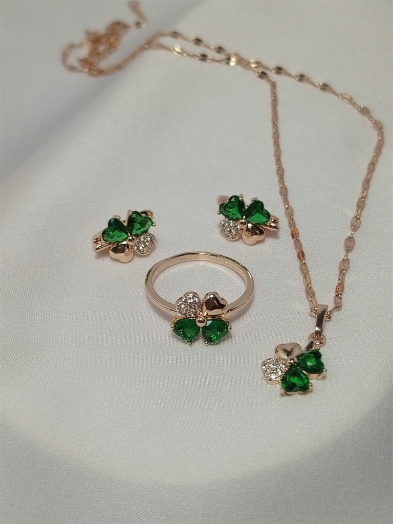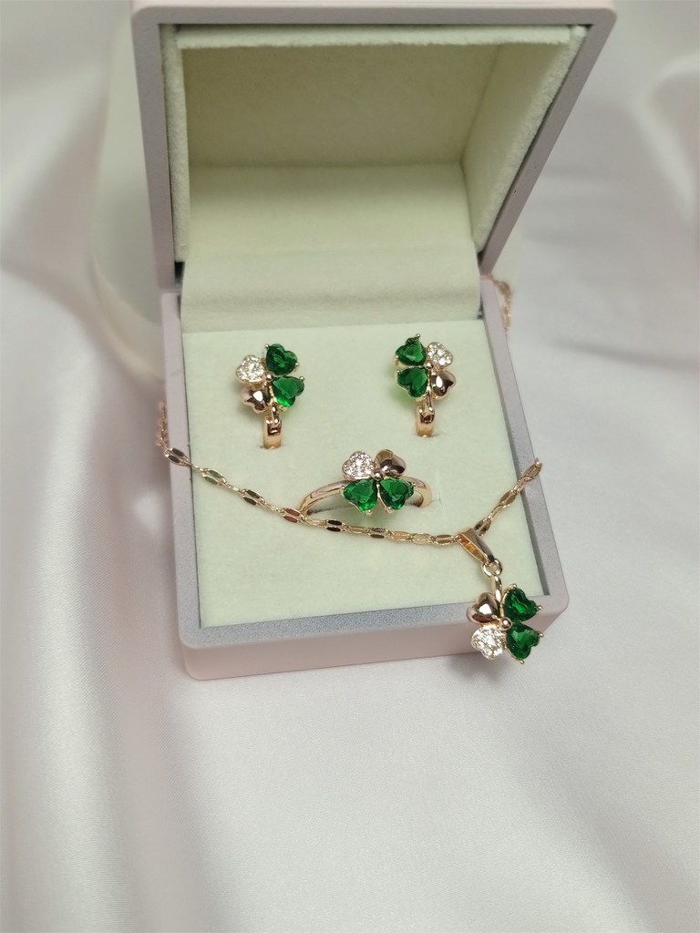 Нежный набор из дубайского золота В набор входят: серьги, кольцо, кулон и цепочка Камни: Кубический цирконий Серьги: Застежка Английская. Размер: 1,3*1,0 см. Кольцо: высота: 0,3 см. ширина лицево... Показать описанией части: 1,0 см Размер кулона: 2,1*1,0 см. Длина цепочки: 50 см. Доставка по России 5-7 дней!Товар на сайте поставщика