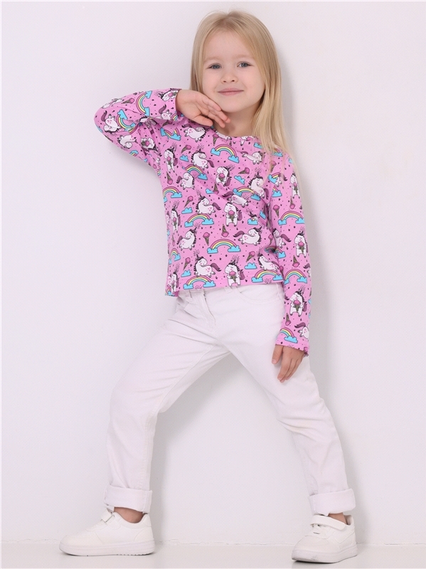 Лонгслив для девочки выполнен из кулира - тонкого хлопкового полотна. Изделие с длинными рукавами:по спинке застегивается на пуговку. Отличный выбор на каждый день! Уход: только машинная стирка (рукам... Показать описаниеи не стирать!) при температуре 40 градусов:без предварительного замачивания. Состав: кулир / хлопок 100%.