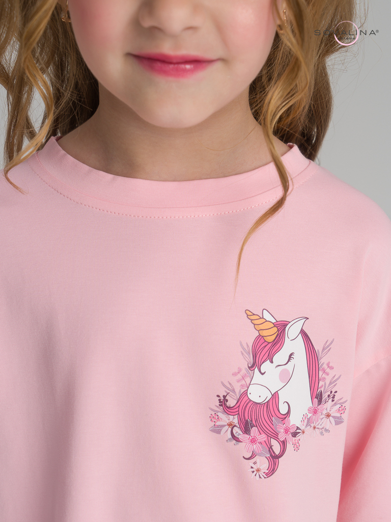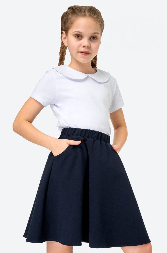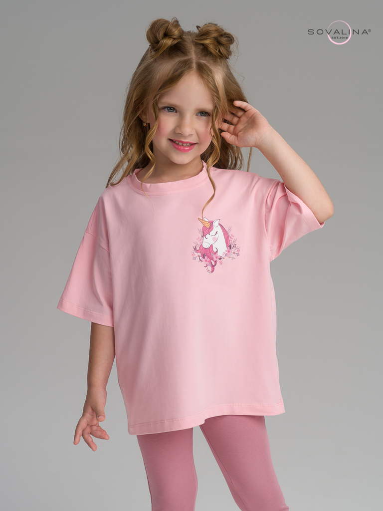 Костюм для девочки из плотного гладкокрашеного трикотажного полотна "кулирка", состоящий из футболки и шорт. Футболка - свободного покроя, с удлиненными плечевым и швами, короткими втачными рукавами и... Показать описание горловиной овальной формы, обработанной втачной планкой. В нижней части переда слева настрочен декоративный элемент прямоугольной формы. По горловине проложена отделочная строчка. Шорты - классического покроя, на притачном поясе с эластичной тесьмой внутри и карманами в боковых швах. Для регулирования степени прилегания шорт по талии в пояс вставлен шнурок, продетый через два отверстия в соединительных швах в центре пояса.